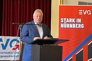 Zentraler Höhepunkt war die Festansprache des EVG-Vorsitzenden Martin Burkert. Bei der Ehrung der 25- und 40-jährigen Jubilare sprach er über aktuelle Entwicklungen in der Eisenbahnbranche und dankte den aktiven Mitgliedern für ihren Einsatz in den Betrieben. „Die starke Organisation in Nürnberg zeigt, wie gut Haupt- und Ehrenamt hier zusammenarbeiten“, betonte Burkert.