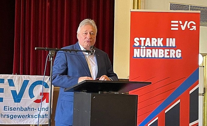 Zentraler Höhepunkt war die Festansprache des EVG-Vorsitzenden Martin Burkert. Bei der Ehrung der 25- und 40-jährigen Jubilare sprach er über aktuelle Entwicklungen in der Eisenbahnbranche und dankte den aktiven Mitgliedern für ihren Einsatz in den Betrieben. „Die starke Organisation in Nürnberg zeigt, wie gut Haupt- und Ehrenamt hier zusammenarbeiten“, betonte Burkert.