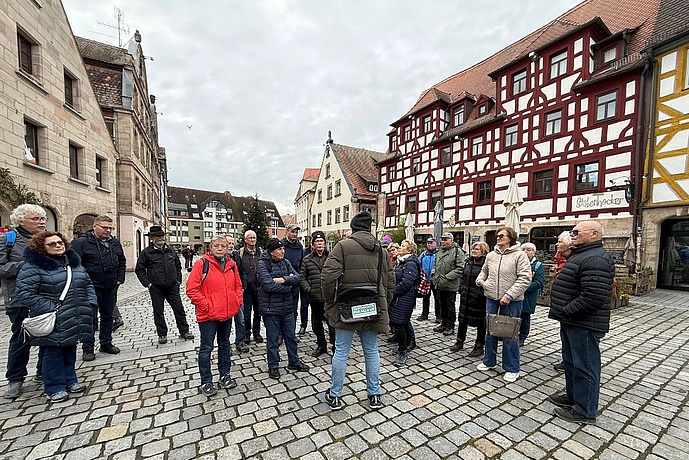 Am Nachmittag stand ein kulturelles Highlight auf dem Programm: eine Stadtführung „Verborgene Orte in der Altstadt von Fürth“. Unsere Gruppe erhielt spannende Einblicke in die historischen Höfe, kleinen Gassen und versteckten Winkel der Fürther Altstadt – Orte, die man im Alltag oft übersieht und die doch so viel Geschichte erzählen.