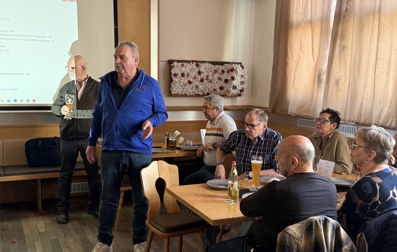 Ingbert Hautsch würdigte anschließend die Initiative und das große Engagement von den „Jungen Senioren“ in Nürnberg und dankte Werner Honisch und Roland Brütting für ihren großen Einsatz. Ein besonderer Dank galt auch Beate Fleischmann, die sich intensiv um digitale Themen kümmert und regelmäßig in den sozialen Medien über die Aktivitäten der Seniorinnen und Senioren im OV Nürnberg berichtet. Zudem stellte er Angebote des Ortsverbandes für aktive EVG-Mitglieder und deren Familien vor, wie etwa Sommerfeste oder gemeinsame Ausflüge – zum Beispiel in den Playmobil-Park. Für dieses Jahr ist unter anderem ein Besuch der Rodelbahn in Pleinfeld geplant.