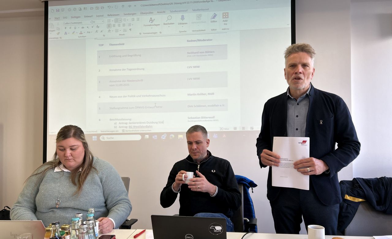 Es war ein politischer Paukenschlag zum Jahresabschluss 2025. In der letzten Sitzung des EVG-Landesverbandsvorstands Ende November ging es um weit mehr als nur Protokolle: Es ging um die Existenzfragen unserer Branche. Mit Martin Kröber (MdB, SPD) und Dirk Schlömer (mobifair e.V.) holten wir geballte Expertise an den Tisch, um die Weichen für die Mobilitätswende direkt im politischen Herz des Landes neu zu stellen.