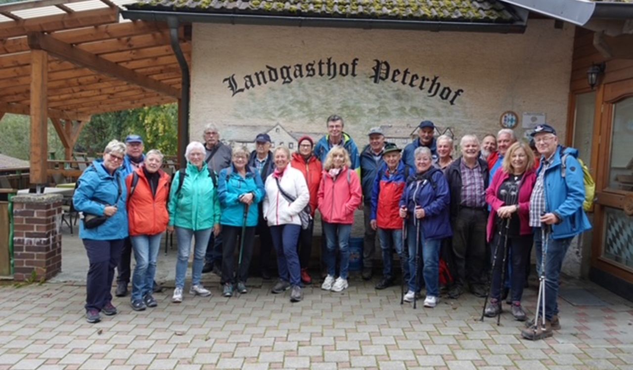 Der Seniorenkreis 2 des OV Nürnberg hat eine schöne Herbstwanderung unternommen. Ca. 20 Kolleginnen und Kollegen trafen sich vormittags mit fünf Gästen des SK 4 am Hauptbahnhof Nürnberg, um mit dem DB RegionalExpress nach Etzelwang zu fahren. Dort wurden wir von weiteren fünf Kolleginnen und Kollegen erwartet.