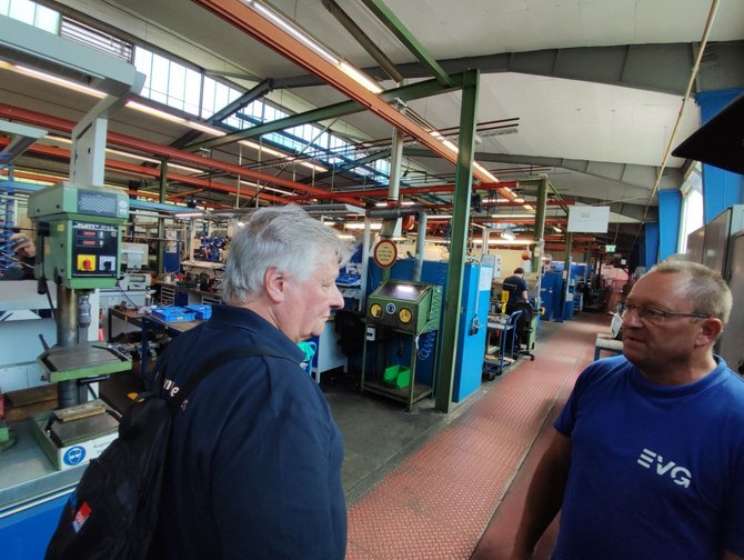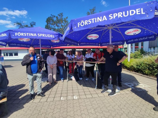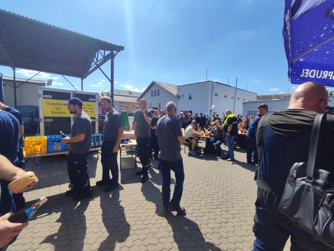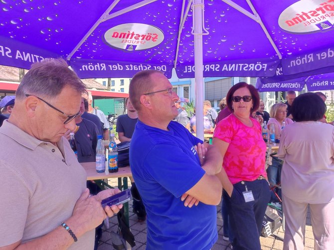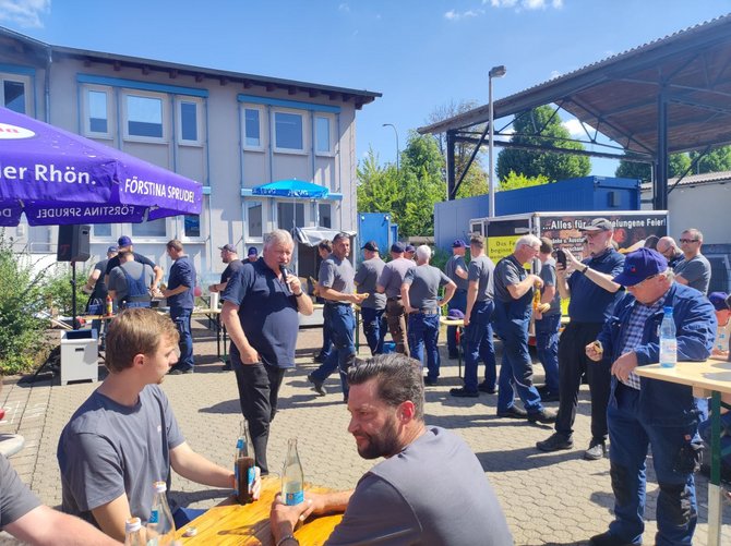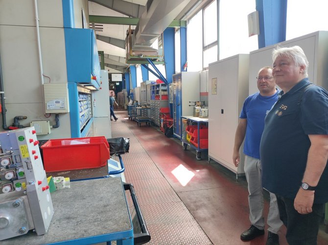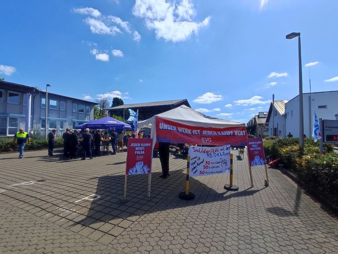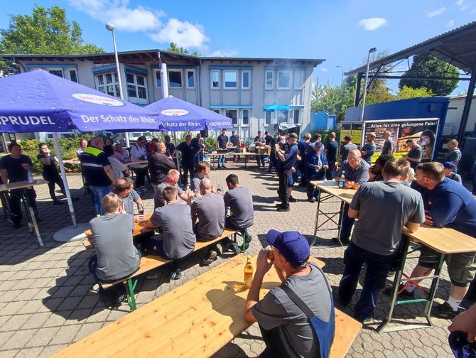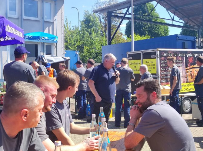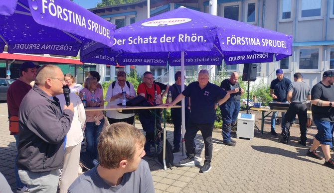 Bei kühlen Getränken, leckerer Grillwurst und guten Einzelgesprächen wurde die Sommertour auf dem Gelände des Werks Fulda fortgesetzt. Zum Ende führte Koll. Stefan Möller gemeinsam mit dem Ortsverbandsvorsitzenden Koll. Albert Wiegand sowie Koll. Markus Pappert durch das Werk. Neben den Produktionsstätten kam es dabei auch zu interessanten Einzelgesprächen. Koll. Martin Burkert bekräftigte zum Abschluss, dass hier gute, hoch qualifizierte Komponenten bearbeitet werden und seiner Meinung nach das Werk Fulda gut für die Zukunft aufgestellt ist.