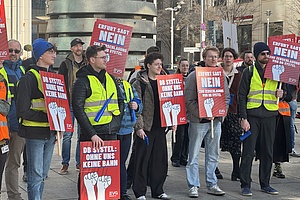 Burkhard Nobbe, Vorsitzender des Gesamtbetriebsrates bei der DB Systel, dämpfte vorsorglich die Erwartungen für das heutige Gespräch. 25 Teilnehmende würden zusammenkommen; vieles müsse sicherlich noch in weiteren Runden geklärt werden. Er betonte aber: „Wir haben es vor zwei Wochen gezeigt, wir zeigen es heute und wir werden zeigen, dass wir um unsere Zukunft kämpfen.“
