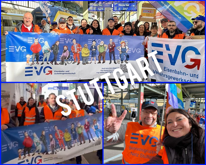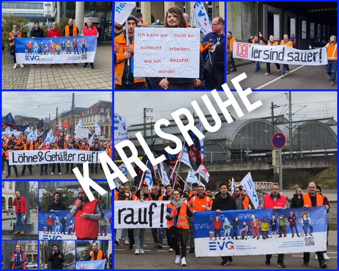 Besondere Aufmerksamkeit verdient die Aktion in Karlsruhe mit zeitweise über 100 Teilnehmer:innen. Solidarisiert haben sich u. a. Parsa Marvi, MdB der SPD, Dieter Bürk, DGB-Chef in Karlsruhe, Anhänger:innen von Fridays for Future, Mitglieder der Linken sowie der Schwestergewerkschaften im DGB. Sehr konfrontativ warnte EVG-Landeschef Kurt Amberger: „Die Gewerkschaft EVG und die Deutsche Bahn sowie 50 weitere Branchenunternehmen ringen vom kommenden Dienstag (28. Februar) an in Fulda um neue Tarifverträge. Schon vor Beginn zeichnen sich schwierige Verhandlungen ab. Die EVG poche angesichts von Inflation, Energiekrise und Personalmangel auf kräftige Lohnerhöhungen und zeigt sich sehr kämpferisch.