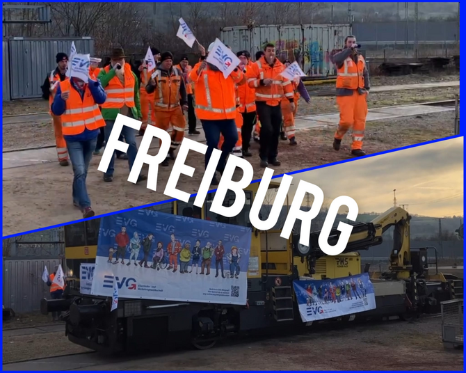 Von den Arbeitgebern erwartet sie ein Angebot bereits in der ersten Verhandlungsrunde - sonst könne es früh zu ersten Warnstreiks und auch mehr kommen. Wir sind auf alles vorbereitet!" Stellvertretend für die EVG-Geschäftsstelle hat Gewerkschaftssekretär Fabian Pangsy gesprochen! Den Demonstrationszug führten die EVG-Gewerkschafterin Anja Bergs und Manuel Amberger an.