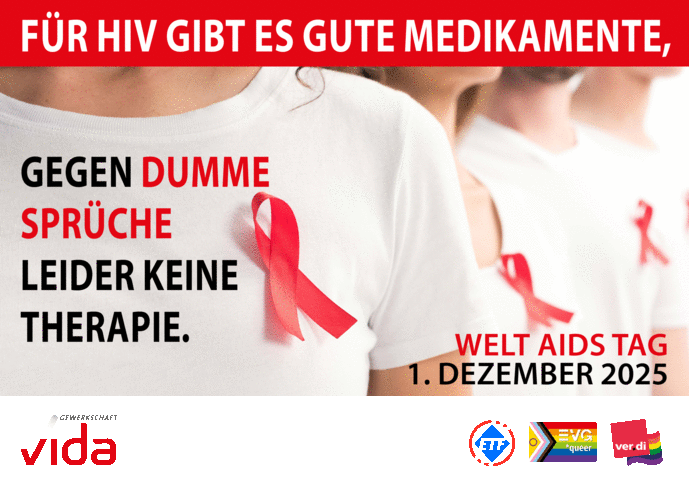 Wir unterstützen eine Arbeitswelt, in der Respekt, Aufklärung und ein diskriminierungsfreies Miteinander selbstverständlich sind. Dazu gehört auch, dass wir unmissverständlich widersprechen, wenn Menschen wegen ihres HIV-Status abgewertet oder beleidigt werden.