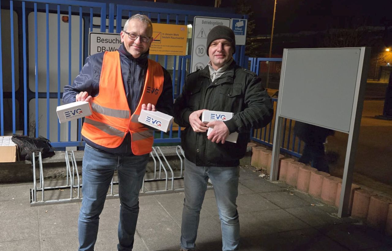 „Der Frauentag ist für uns ein wichtiger Anlass, den Kolleginnen persönlich Danke zu sagen“, erklärt Frank Strowicki, Vorsitzender der EVG-Betriebsgruppe Dessau. „Wir sehen euren täglichen Einsatz – und genau dafür stehen wir als EVG: gemeinsam für Respekt, Zusammenhalt und eine starke Stimme der Beschäftigten im Betrieb.“