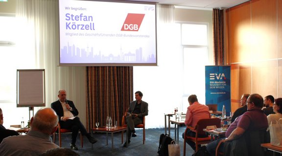 Holger Naujoks, Hauptpersonalrat der BEV, warf einen Blick auf die Geschichte und erläuterte dadurch, dass es in der Vergangenheit verschiedene Konzepte gab, um das Problem des Wohnraumes zu lösen. Josef Vogel, Vorsitzender der ARGE Eisenbahnergenossenschaften, ergänzte: „Wir stehen in der Aufgabe, bezahlbare Wohnräume zu sichern. Denn Wohnungen sind Sozialgut, nicht nur Wirtschaftsgut.“ Er betonte, dass die Herausforderungen groß sind, aber dankbar sei, mit der EVG auf der gleichen Seite zu kämpfen.