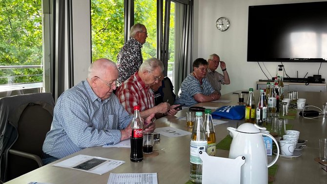 Senioren tagten in einem Tagesseminar am 3. Juni 25 unter der Leitung vom Vorsitzenden Dieter Berndt beim Eisenbahner Bauverein in Düsseldorf. Als Referent hatte Dieter die Kollegen Hermann-Josef Müller und Günter Schernus, Versichertensprecher gewinnen können. Zur aktuellen Lage begann Kollege Müller mit den Schlagzeilen am Morgen, demnach liegen in Deutschland Bargeld in der Größenordnung von rund 400 Mrd. Euro in den Haushalten. Das liebe Geld war auch direkt das erste Thema in der Runde von den 12 Teilnehmern, angefangen von den Schwierigkeiten, welche zwischen KVB und GPV/HMM seit Mitte letzten Jahres existieren. Auch im Teilnehmerkreis wurde vielfach berichtet, welche Auswüchse hier zu vermelden sind. Zitat Edeltraut Fuhr: Draußen gibt es Menschen, die haben kein Internet, die haben auch keinen Computer, wie sollen die denn mit diesen Schwierigkeiten klarkommen, es ist ein Skandal.