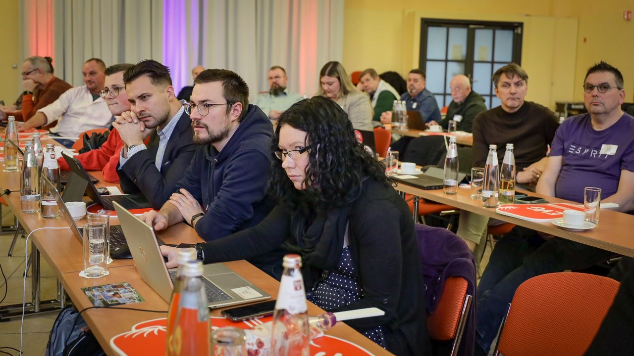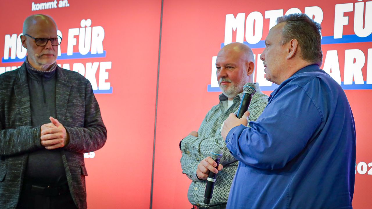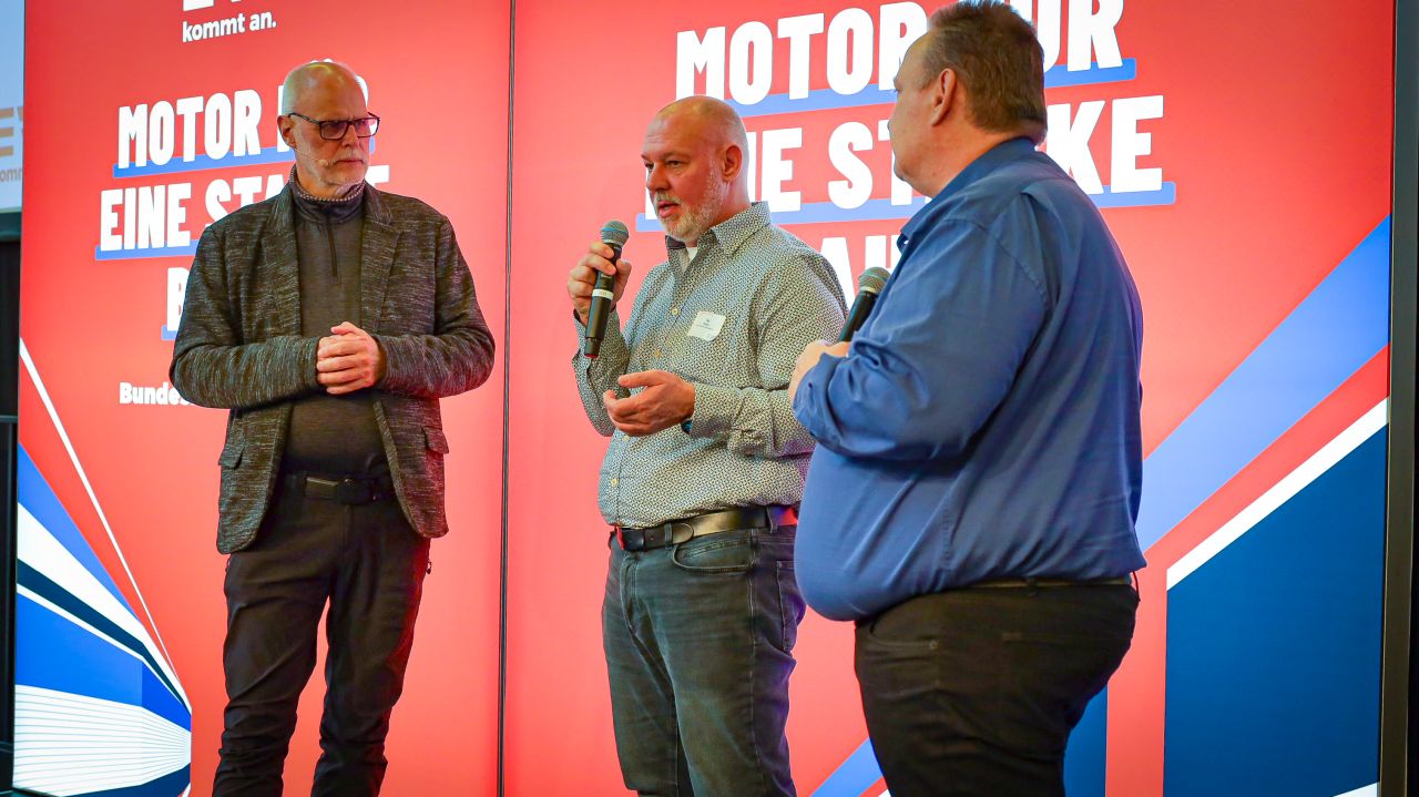 Kurz vor dem abschließenden Programmpunkt, der Verabschiedung des Arbeitsprogramms 2026, hatte die Bundeskonferenz noch zwei Gäste: Ronald Ditte und Kay Ellmers, Betriebsräte im Werk Bremen der DB Fahrzeuginstandhaltung. Sie kamen direkt von einem anderen Event, der Verleihung des Deutschen Betriebsrätepreises in Bonn. Kay Ellmers berichtete von „einem überwältigenden Erlebnis“ im ehemaligen Plenarsaal des Deutschen Bundestages in Bonn. „Es gab auch sehr interessante Themen der anderen Gremien, wir konnten da auch viel mitnehmen.“