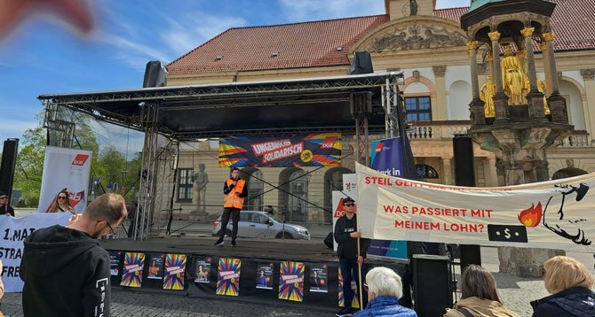 Die Maiansprache hielt Susanne Wiedemeyer (Leiterin DGB Landesbüro Sachsen-Anhalt). Ihr Appell: Unternehmen müssen ihrer sozialen Verantwortung wieder gerecht werden. Gutes Geld für gute Arbeit und keine Armutslöhne. „Starke Löhne sind ein wirkungsvolles Mittel gegen Inflation. Die Lohn-Preis-Spirale ist ein Märchen ohne Substanz. Die Ursache für gestiegene Preise, sind nicht die Forderungen nach Reallöhnen.“