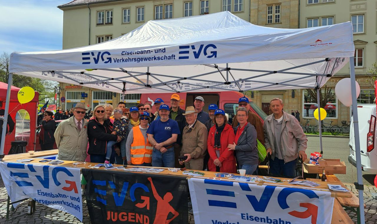 Das Hauptprogramm gestaltete an diesem Tag unsere DGB Jugend. Die bewegende Rede von Danilo Kobow (EVG Jugend, DB Netz AG) über die aktuelle Situation der Jugend und der Tarifauseinandersetzung mit der DB AG fand großes Gehör und lautstarken Beifall. Mehr als einmal ertönte der RUF auf dem Marktplatz: Was, was, was ist vernünftig? 650€, 650€.
