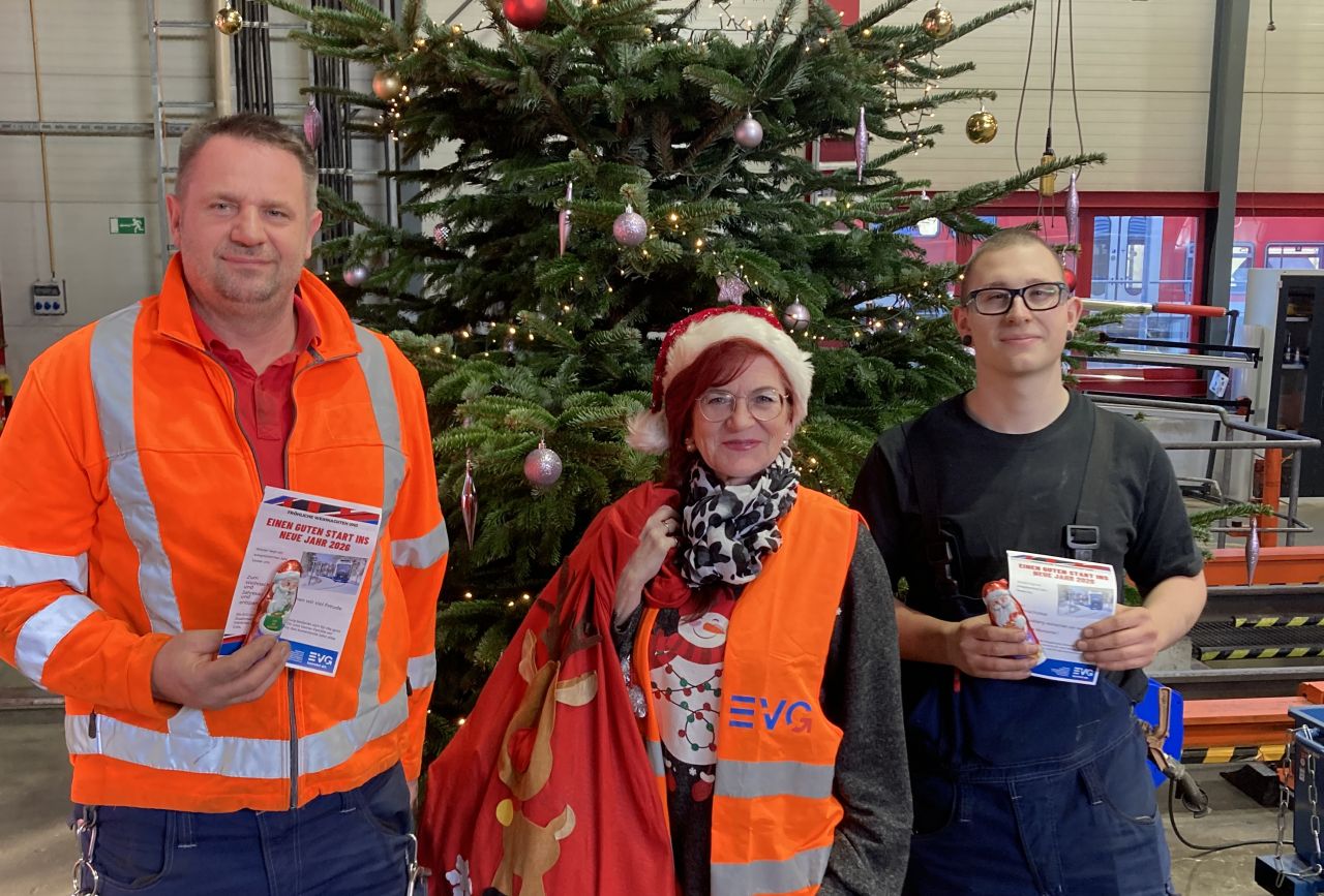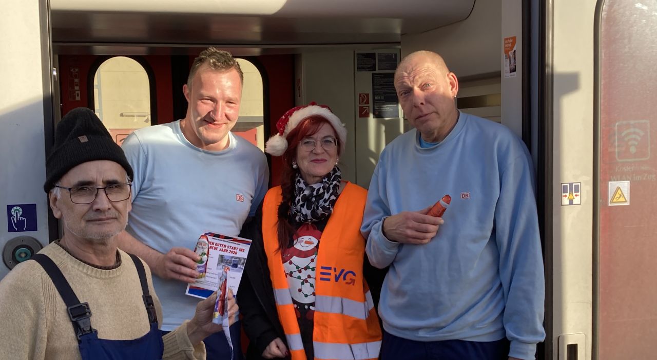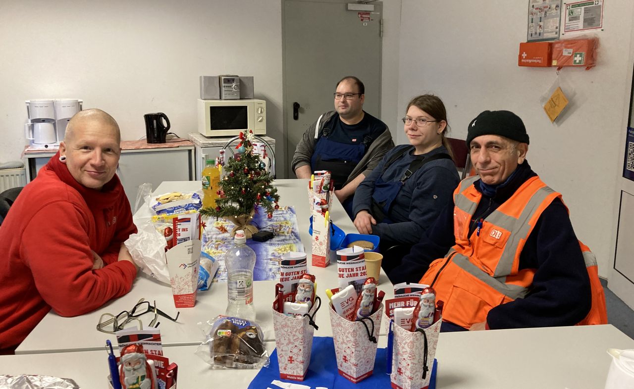 Am Montag überraschten wir die Kolleginnen und Kollegen von DB Regio am HBF Magdeburg. Dort, wo der Arbeitsalltag meist wenig Raum für Pausen lässt, sorgten wir für einen kurzen Moment der weihnachtlichen Freude. Für alle, die wir vor Ort nicht persönlich antreffen konnten, hatten wir natürlich vorgesorgt: In ihren Fächern hinterließen wir eine kleine Überraschung - ein Zeichen dafür, dass auch sie nicht vergessen wurden.