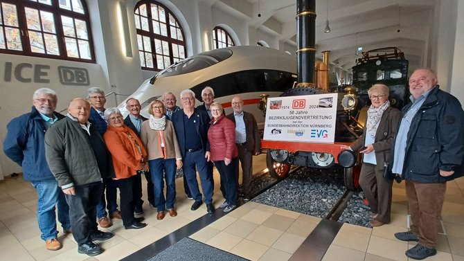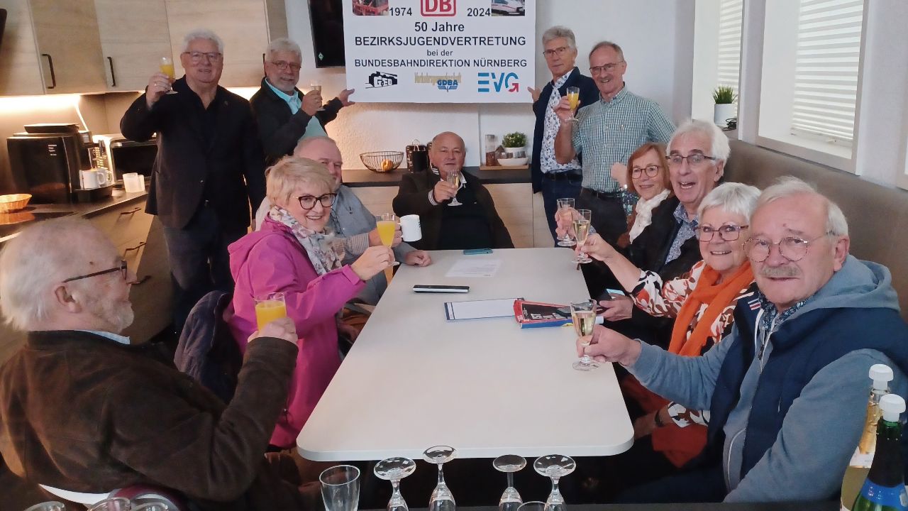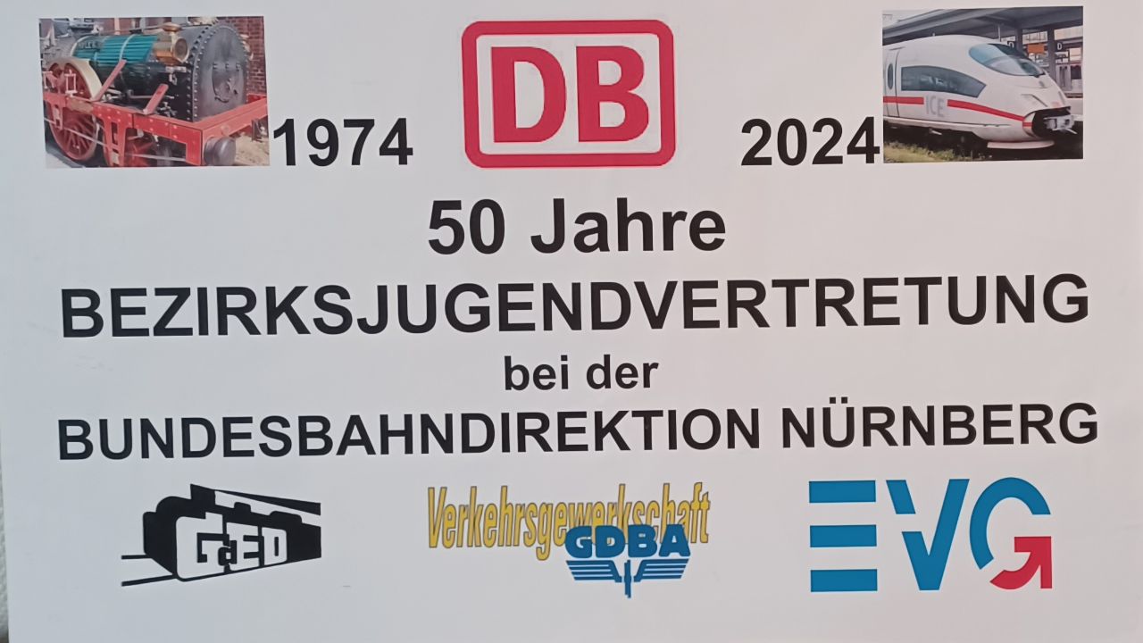 Mit dem Motto „Mehr Demokratie wagen!“ gab Bundeskanzler Willy Brandt am Anfang der 70er Jahre den Anstoß für „mehr Mitbestimmungsrechte für Arbeitnehmer“. Erstmals in der Geschichte der Bundesrepublik Deutschland wurden vom 8. bis 10. Oktober 1974 „Stufen-Jugendvertreter“ nach der Novellierung des Bundespersonalvertretungsgesetzes (BPersVG) gewählt. Nach 50 Jahren trafen sich im Konferenzraum (Sitzungsort der Konstituierung) die Mitglieder der „Bezirksjugendvertretung bei der Bundesbahndirektion Nürnberg“ (BJV) und Ortsjugendleiter der GdED (Gewerkschaft der Eisenbahner Deutschlands) auf Einladung des damaligen ersten BJV-Vorsitzenden Anton Hofmann und des Ex-EVG-Organisationssekretärs Johann Gebhardt. Zuerst traf man sich im DB Museum zum Rückblick und anschließend zu einem kleinen Umtrunk in der Geschäftsstelle der EVG (Eisenbahn- und Verkehrsgewerkschaft) in Nürnberg.