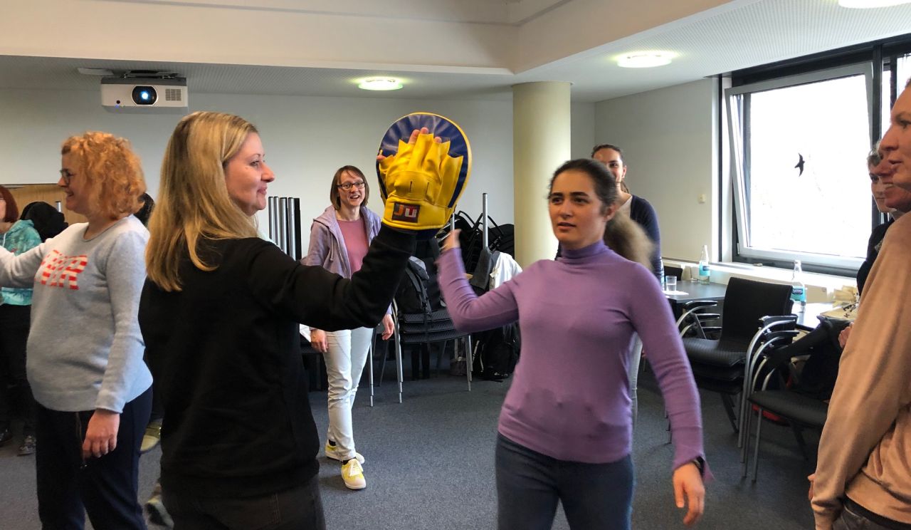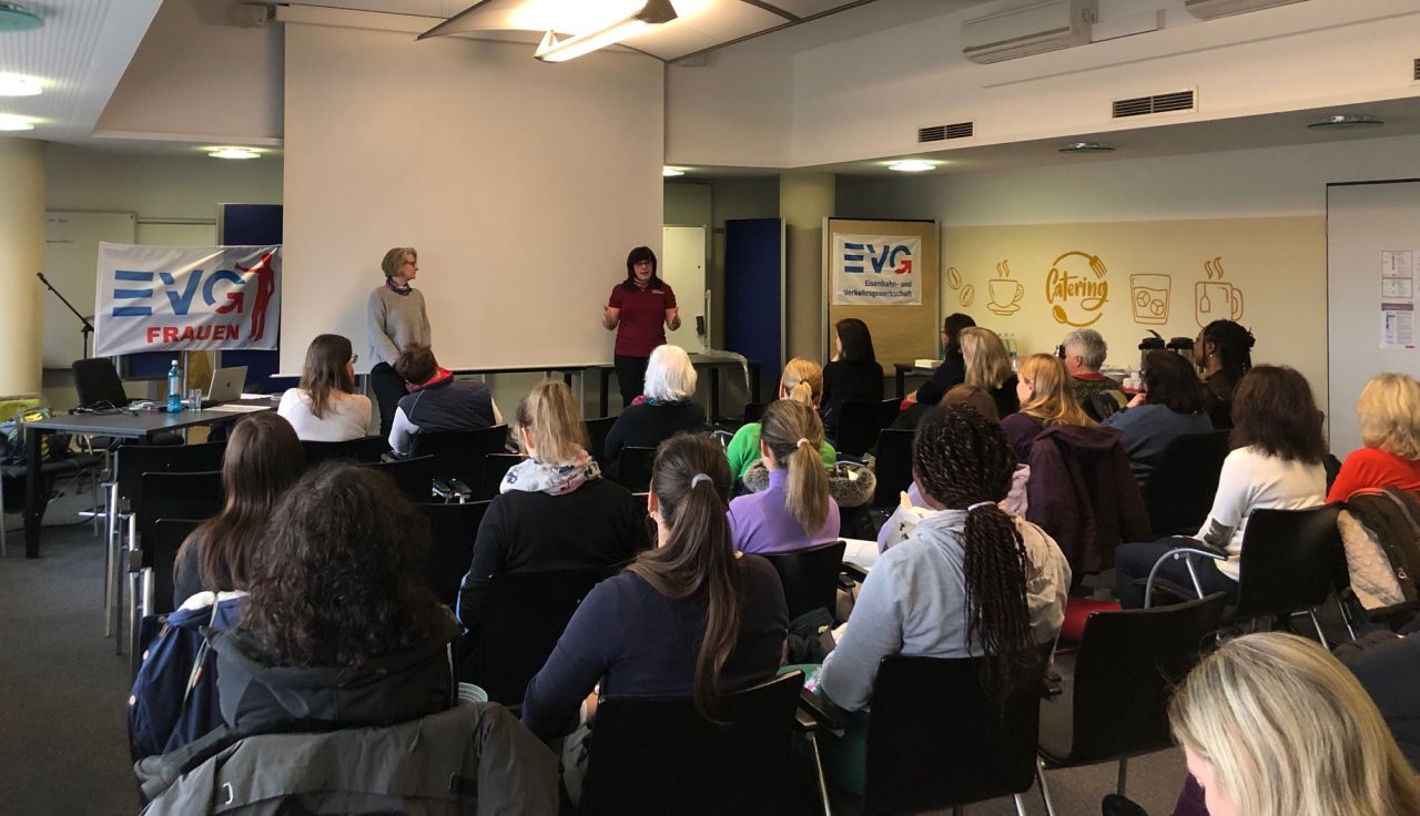 Unsere Vorsitzende der Bundesfrauenleitung, Nadja Houy, hat sich die Zeit genommen, um einen Überblick über die aktuellen EVG Frauenthemen zu geben. Nach einem Einblick in die Historie zum internationalen Frauentag, ging es mit einem Selbstverteidigungskurs sowie einem Mitmachvortrag „Raus aus dem Stress“ mit der VDES-Trainerin Corinna Bildat weiter.