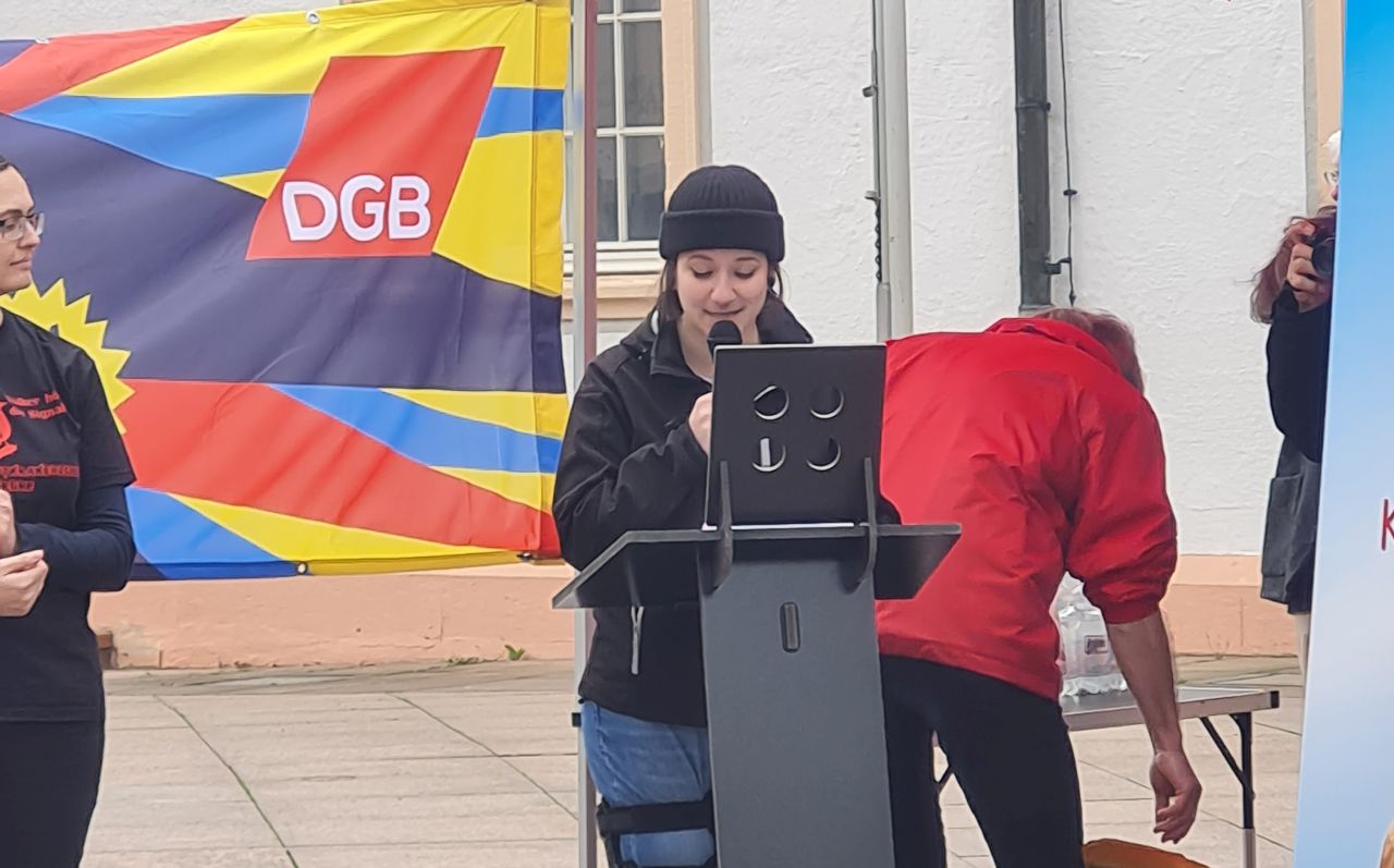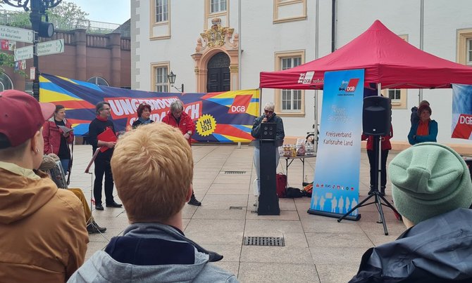 Dieses Jahr ist am 29.04.2023 vor dem Schloss Isabel Limerov, ver.di, Bezirk Mittelbaden-Nordschwarzwald, als Hauptrednerin aufgetreten. Neben ihr hielten noch der Vorsitzende des DGB Karlsruhe-Land, Dieter Behringer, und Elwis Capece von der NGG sowie Klimaaktivisten interessante Reden. Musikalische Unterstützung gab es von den Rotkrakelchen, welche Arbeiterlieder sangen. Seitens der EVG sind Ingrid Hipp, Regina Pola, Sandra und Manuel Amberger dabei gewesen.