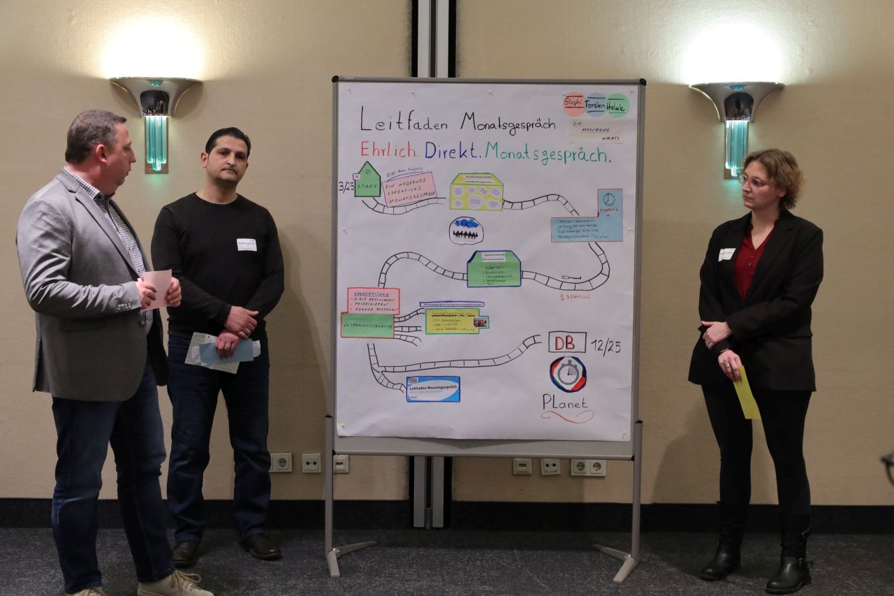 Auch Routineangelegenheiten kann man noch optimieren – dachte sich eine weitere Projektgruppe und entwickelte einen Leitfaden für Monatsgespräche. Strukturiert, lösungsorientiert, verständlich und fair sollte ein Monatsgespräch sein, so die AG, und gut vorbereitet sollte ein Betriebsrat in das Gespräch gehen. Den Leitfaden hat das Team als Power Point Foliensatz als DB Planet eingestellt.