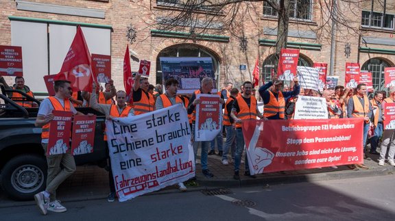 Andreas Steins prangerte in seiner Rede vor den Protestierenden an, dass im Werk Paderborn nicht mehr ausgebildet werden soll. Dies sei kein Signal für die Zukunft und der falsche Weg für die gesamte DB.