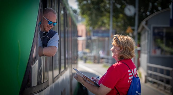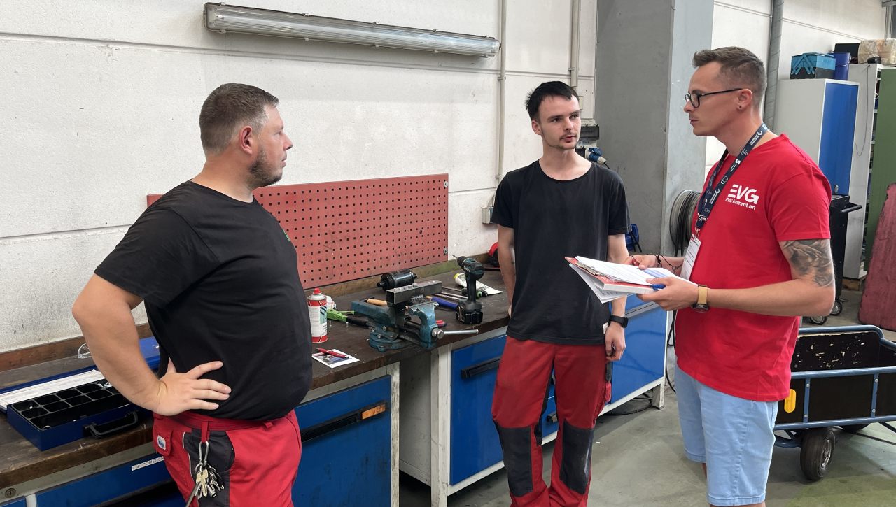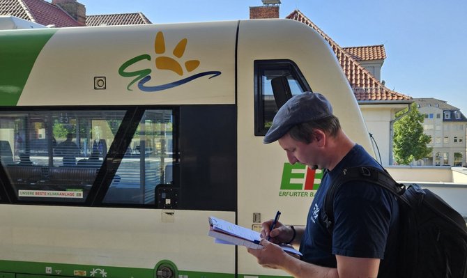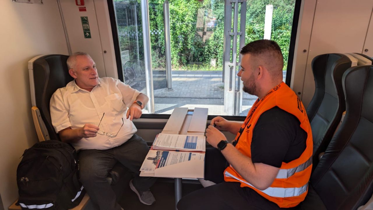 Nachdem Informationsmaterialien, kleine Giveaways und natürlich die Fragebögen zusammengestellt wurden, sind die Teams ausgeschwärmt. Es wurden in diversen Standorten der Erfurter Bahn und der Süd-Thüringen-Bahn (EB&STB) Befragungen durchgeführt. Befragt wurden die verschiedenen Berufsgruppen: Egal, ob Lokführer:innen, Zugbegleiter:innen, Kolleg:innen aus dem Kundencenter, Leitstelle, Werkstatt und der Verwaltung. Mit dabei war der Betriebsratsvorsitzende der Erfurter Bahn, Thomas Filip.