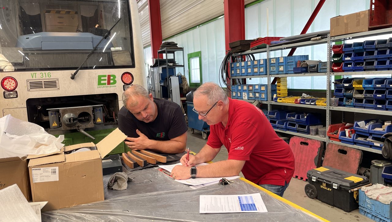 Ziele waren die Standorte der Erfurter Bahn und seiner Tochter, der Süd-Thüringen-Bahn. Rund 650 Kolleginnen und Kollegen sind in dem Unternehmen beschäftigt, das mit rund 100 Regio Shuttle RS1 den Nahverkehr in vier Bundesländern bedient.
