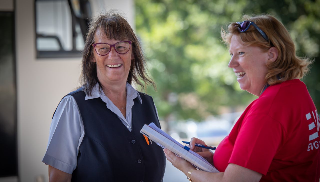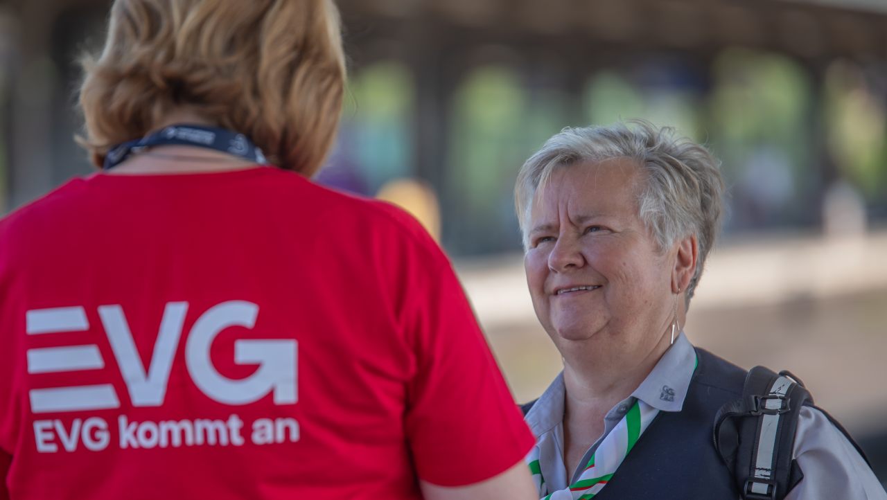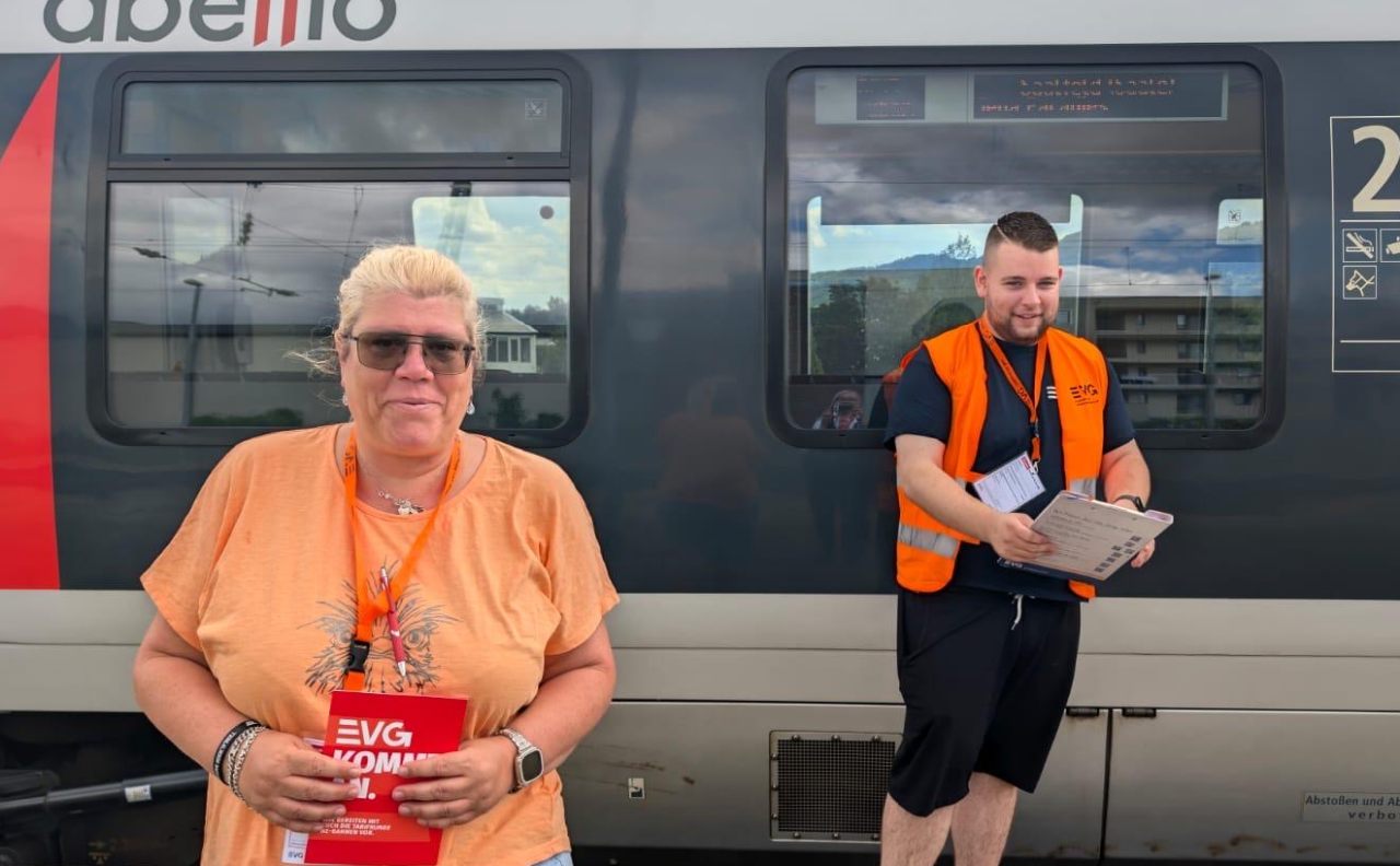 Die Teams befragten mit Stiften und Fragebögen bewaffnet die Kolleginnen und Kollegen nach ihren Wünschen und Erwartungen für die anstehende Tarifrunde. Bereitwillig nahmen alle an der Befragung teil - und auch hier wurde der bisherige Trend bestätigt: Das EVG-Wahlmodell ist für alle für wichtig. Das bestätigte auch Thomas Filip: „Das zweite Wahlmodell muss stehen! Wenn wir noch weitere Zusatzleistungen bieten, ist das attraktiv für unsere Kolleginnen und Kollegen und damit sind wir der Konkurrenz voraus,“ betonte er. Für ihn ist die Aktion eine gute Gelegenheit, mit den Beschäftigten ins Gespräch zu kommen.