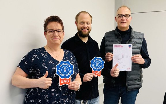 Mit der Auszeichnung wird deutlich: Die EVG-Liste im Wahlbetrieb InfraGo Netzbetrieb Osnabrück steht für frische Impulse, Erfahrung, Zusammenhalt und eine starke Stimme für alle Beschäftigten. So wird Mitbestimmung aktiv gestaltet – heute und in Zukunft.