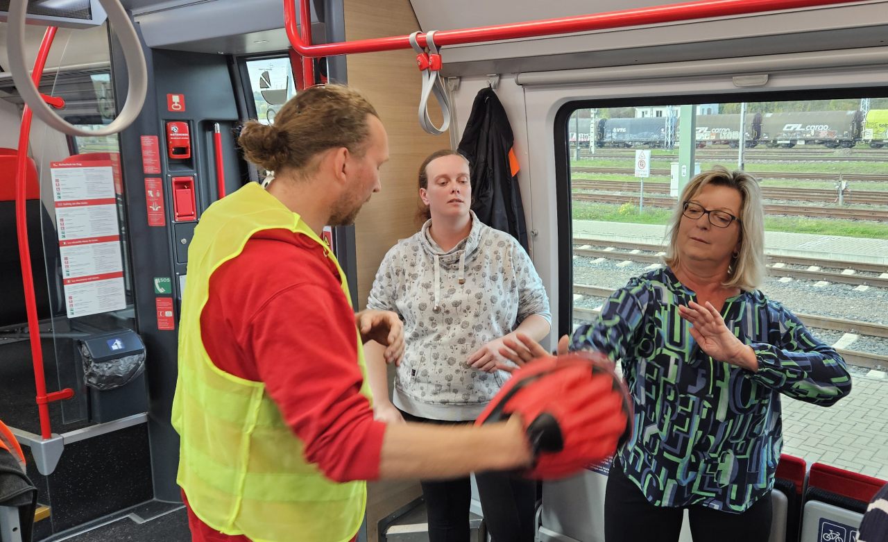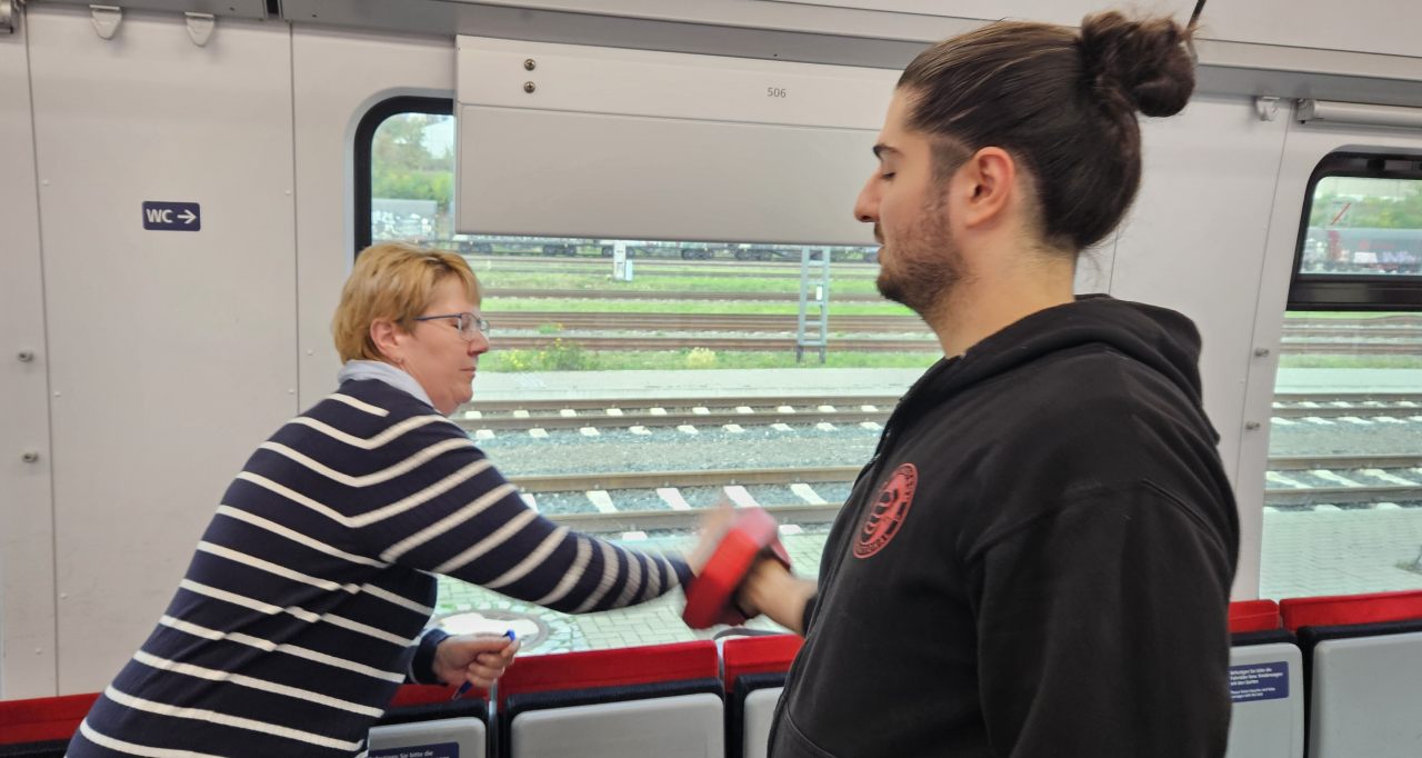 Trainer Jörg Aschemann legte den Fokus darauf, Konflikte im Zug frühzeitig zu erkennen und deeskalierend zu handeln, ohne sich selbst in Gefahr zu bringen. Die Teilnehmerinnen gewannen wichtige Erkenntnisse über den Umgang mit herausfordernden Situationen und lernten wertvolle Techniken, um potenziell gefährliche Situationen zu entschärfen. Besonders hervorzuheben war der Wunsch, Szenarien zu simulieren, wie das sichere Einsteigen ins Auto auf dunklen Parkplätzen nach Schichtende.