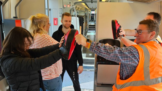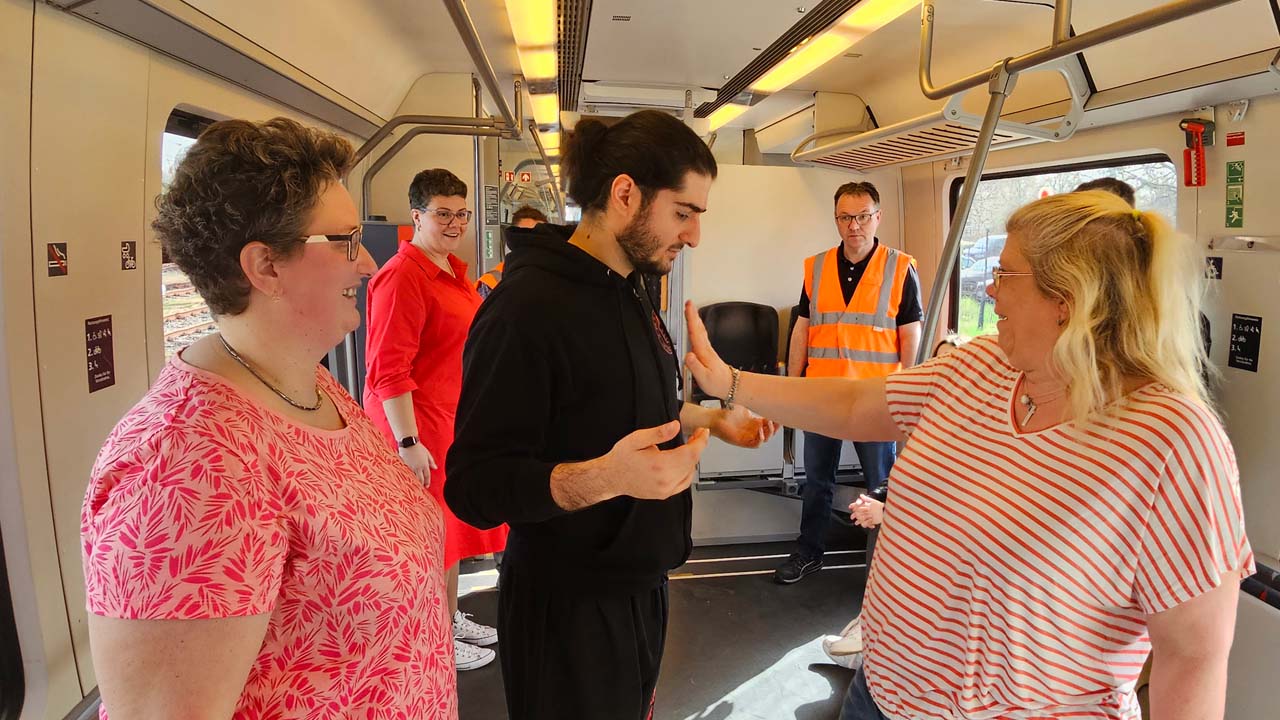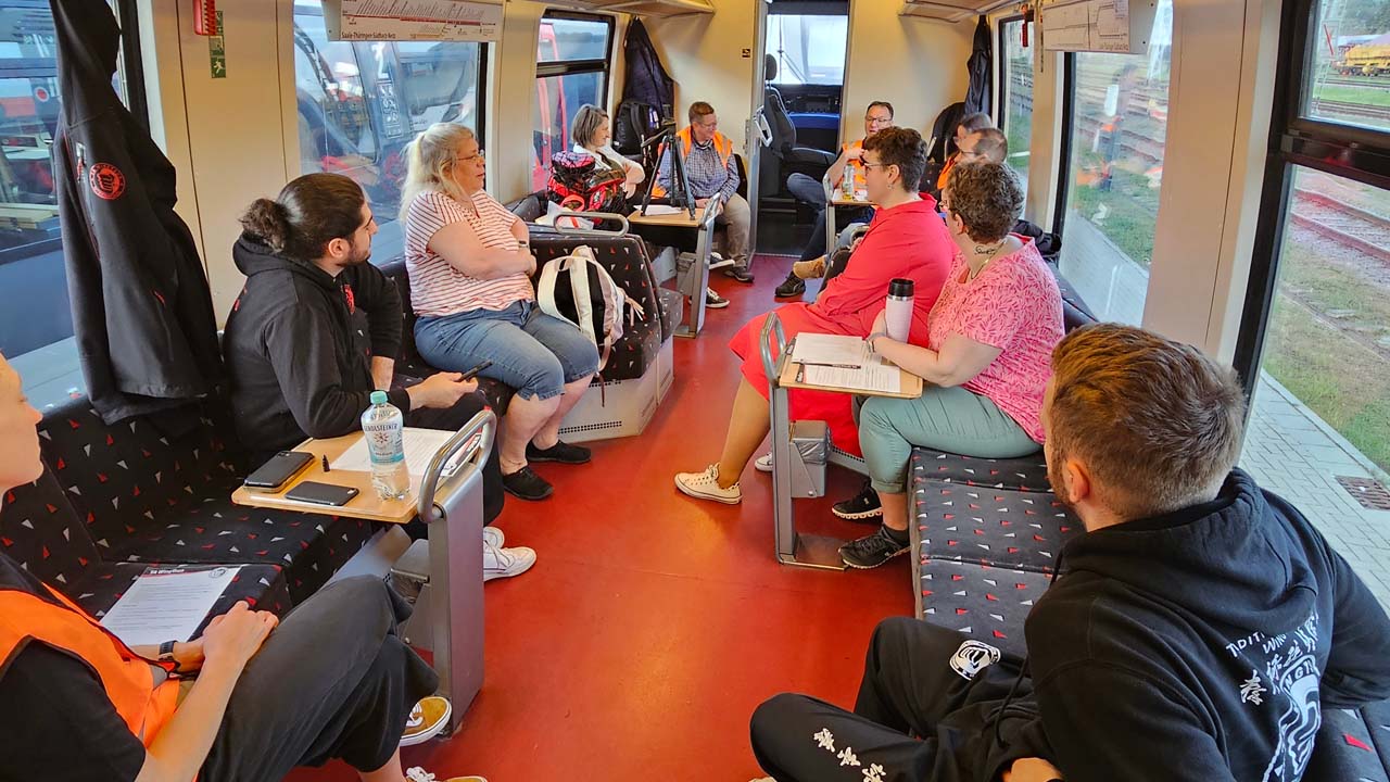 Während des Deeskalationstrainings wurden alltägliche Situationen nachgestellt, die unsere Kolleginnen und Kollegen täglich in den Zügen erleben. Durch diese praxisnahe Herangehensweise konnten sie die Realität des Arbeitsalltags hautnah erleben und in einem sicheren Umfeld reagieren. Sie lernten, Konflikte frühzeitig zu erkennen und entsprechend deeskalierend in die Situation zu gehen.