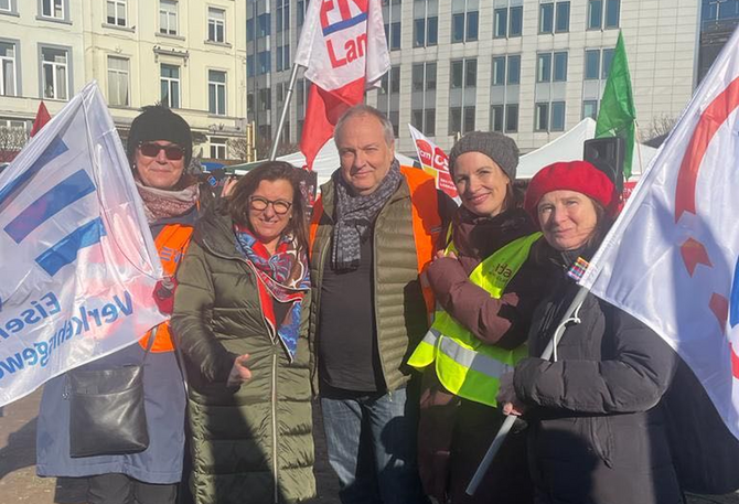 EVG protestiert gegen Intransparenz: Gemeinsam mit unserem europäischen Dachverband der ETF wenden wir uns gegen das Vorhaben der EU-Kommission, den Schienenverkehrsmarkt durch die Hintertür noch weiter zu liberalisieren. Am Dienstag haben wir daher in Brüssel gegen die neuen „Auslegungsleitlinien“ zur Verkehrsverordnung PSO protestiert.