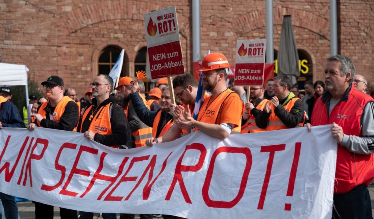 Mit ihrem Banner „Wir sehen rot!" reisten die Kolleg:innen über Mannheim an, um dort weitere Kolleg:innen einzusammeln. Den respektlosen Umgang mit den Kolleginnen und Kollegen kritisierte auch Christian Bonner, Vorsitzender des Cargo-Betriebsrates in Mannheim. „Die ersten verlassen schon aus Sorge um ihren Arbeitsplatz das Unternehmen, aber das ist dem Vorstand völlig egal“, stellte er fest.