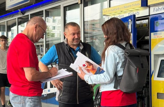 „Im Vorfeld haben wir in allen Betrieben unsere Kolleginnen und Kollegen nach ihren Schwerpunkten zur Tarifrunde befragt. Das Votum war eindeutig: Die Beschäftigten wollen mehr Geld“, so die stellvertretenden EVG-Vorsitzenden Kristian Loroch und Cosima Ingenschay.