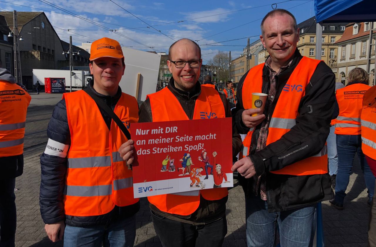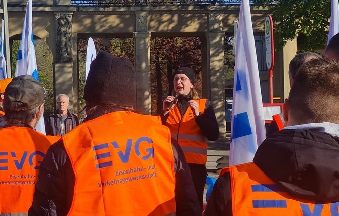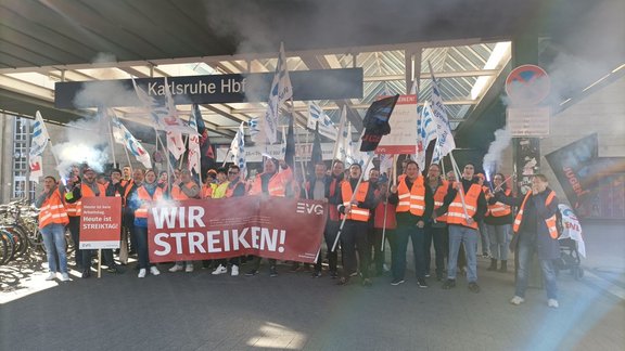 EVG Karlsruhe zeigt auch beim zweiten Warnstreik Flagge