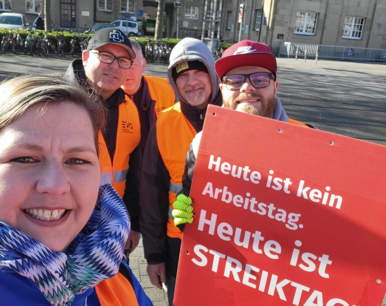 Mit aller Deutlichkeit zeigte die EVG Karlsruhe am vergangenen Freitag zum zweiten Warnstreik in der aktuellen Tarifrunde wieder Flagge. Mit Pyrotechnik ausgestattet und lautstarker musikalischer Unterstützung haben an der Kundgebung des EVG Ortsverbandes wieder Hundert Kolleg: innen teilgenommen.
