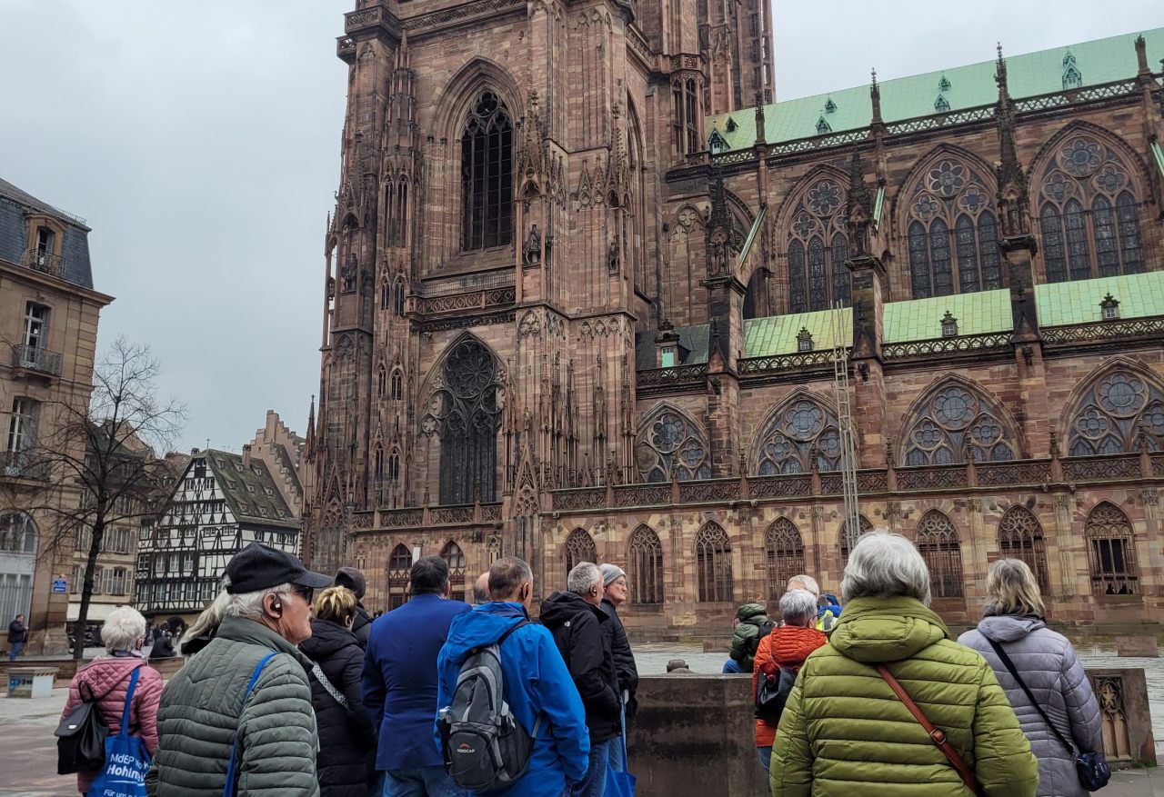 Vom Parlament ging es mit der Tram ins Stadtzentrum zur Stärkung ins Le Gruber. Danach hat uns der Stadtführer vor und im Münster auf viele Besonderheiten hingewiesen. Der Arschbloser, der begrabene Hund, der Hund, der nach Osten blickt, der Viernagelchristus, sind einige davon und werden sicherlich in Erinnerung bleiben. Ein besonderer Dank geht an den Organisator Bernd Hurst aus Kehl mit der Idee zum Ausflug und der guten Auswahl des Führers für Straßburg und Ansprechpartner im Parlamentsgebäude.