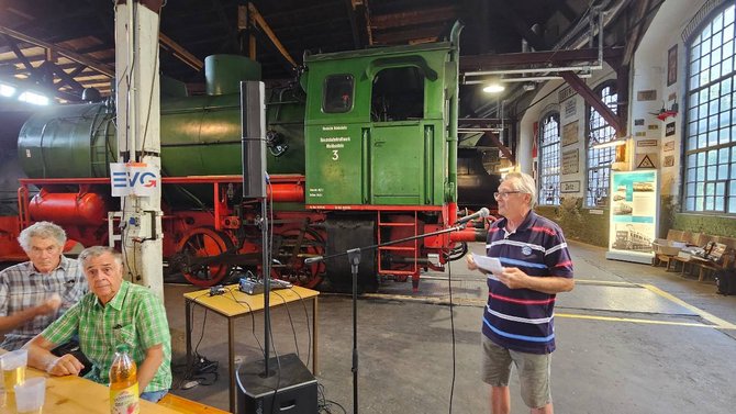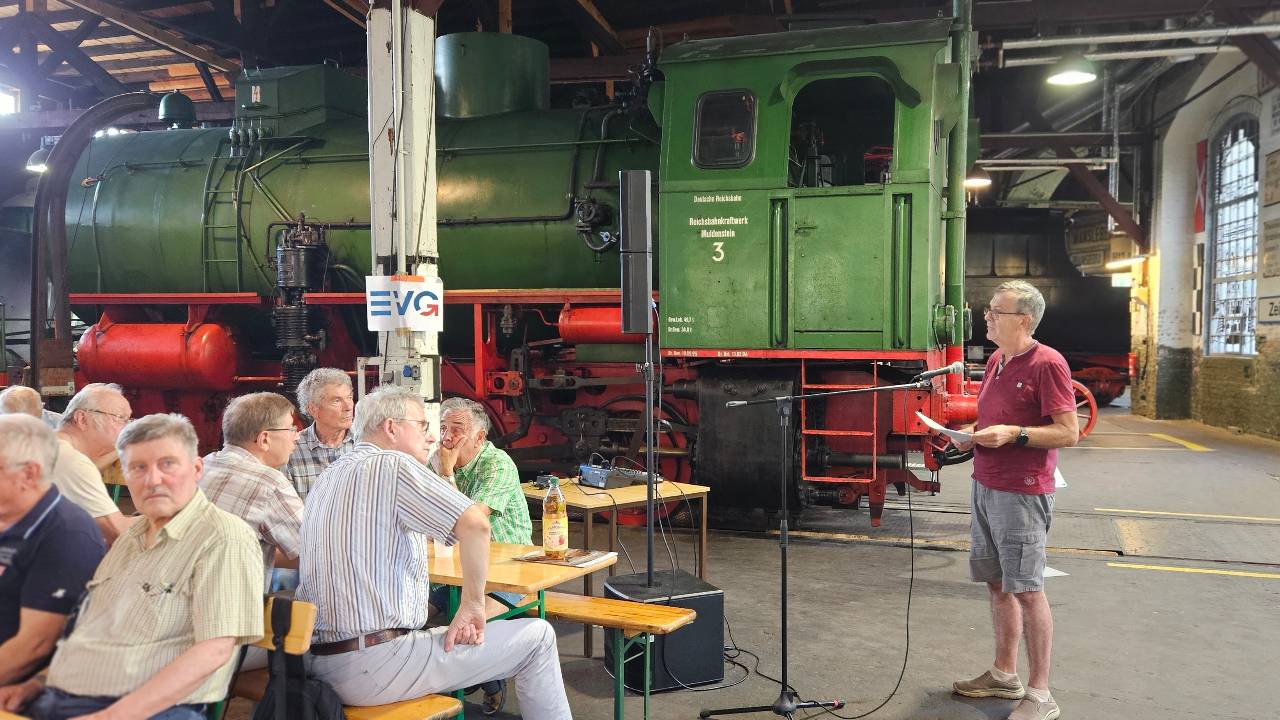 Die Ortseniorenleitung Halle lud zu einem besonderen Seniorentag in das DB Museum ein. Erich Dressler, der Ortsseniorenleiter, eröffnete die Veranstaltung mit einer herzlichen Begrüßung der anwesenden EVG-Mitglieder und hob die Bedeutung solcher Treffen für den Austausch unter den Senior*innen hervor.