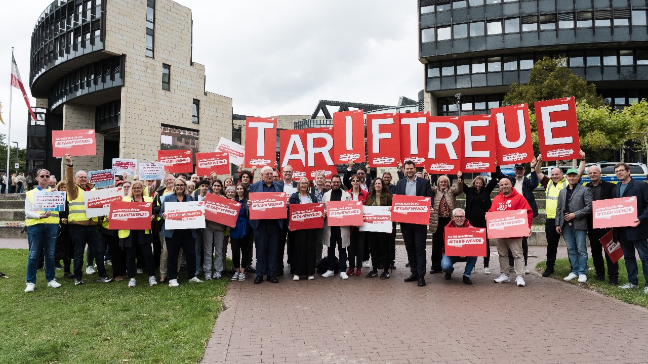 WIR FORDERN: Öffentliche Aufträge dürfen künftig nur noch an Unternehmen vergeben werden,  die nach Tarifvertrag bezahlen. Wir brauchen ein Tariftreuegesetz für NRW, das wirkt!