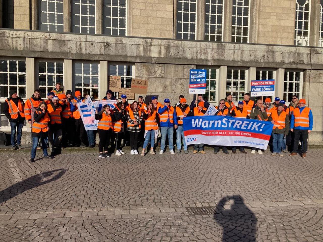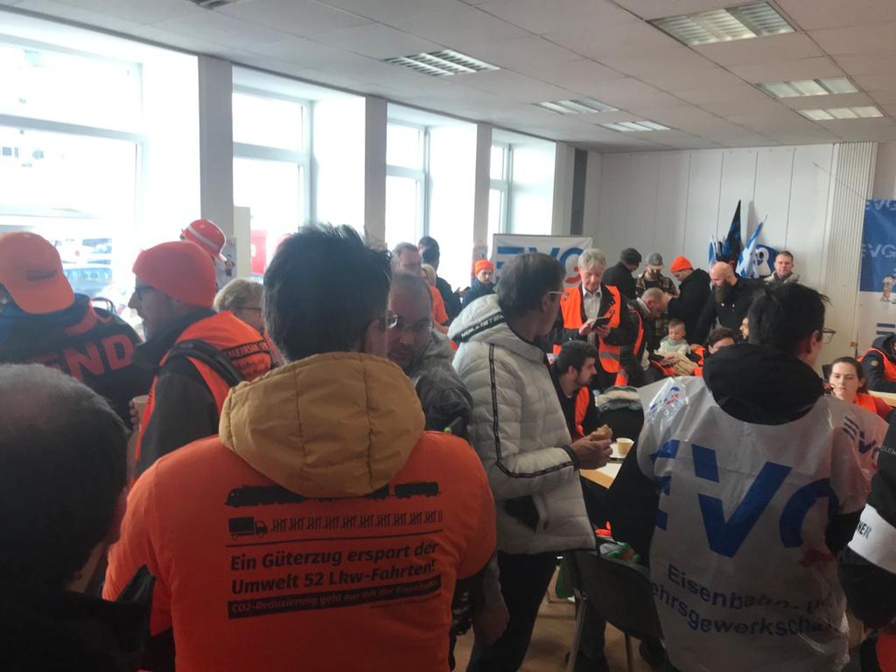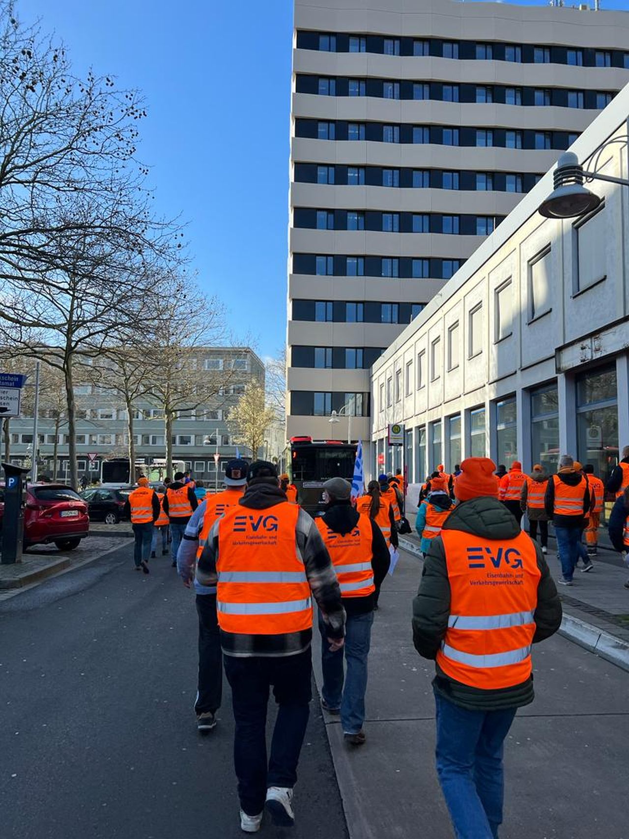 Dass unsere Mitglieder somit quasi von zuhause aus streiken konnten, war besonders gut, denn „ein Zugverkehr war ab 00:00 Uhr Zeigersprung nirgends mehr möglich“ so unser Geschäftsstellenleiter Lars Kreer. Bundesweit war der Streik zusammen mit unserer Schwestergewerkschaft ver.di koordiniert. In Mainz schlossen sich die Streikenden jeder Gewerkschaft nach zwei eigenen Demonstrationen durch die Landeshauptstadt vor dem Bahnhof zum gemeinsamen Streik zusammen.