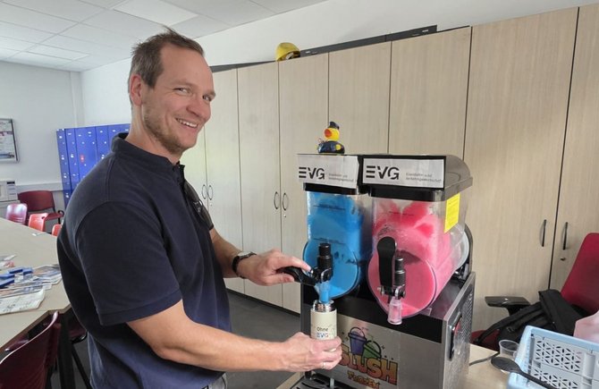 Ein großes Dankeschön geht an den Fonds soziale Sicherung, der die Slush-Eis-Maschine zur Verfügung gestellt hat, an die GUV Fakulta für ihre Unterstützung und an unseren Kollegen Frank, der tatkräftig mit angepackt hat.