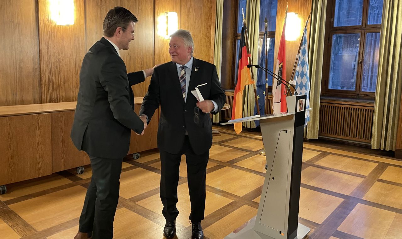 OB Markus König gratulierte Martin Burkert zur Wahl zum EVG-Vorsitzenden. „Nürnberg war immer und ist eine Eisenbahnerstadt“, so der CSU-Politiker. Er erinnerte daran, dass hier vor 187 Jahren die Geschichte der Eisenbahn in Deutschland ihren Anfang genommen hat. „Gemeinsam tragen wir viel Verantwortung für die Verkehrswende.“