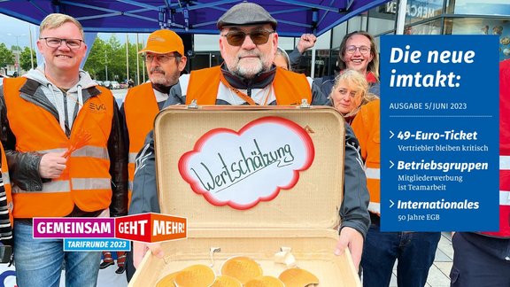 Die Tarifrunde der EVG ist in einer entscheidenden Phase. Unsere Warnstreiks haben ihre Wirkung nicht verfehlt. Sie steht natürlich im Mittelpunkt der Juni-imtakt, die in diesen Tagen produziert wird. Wir haben aber noch andere spannende Themen für euch im Angebot.
