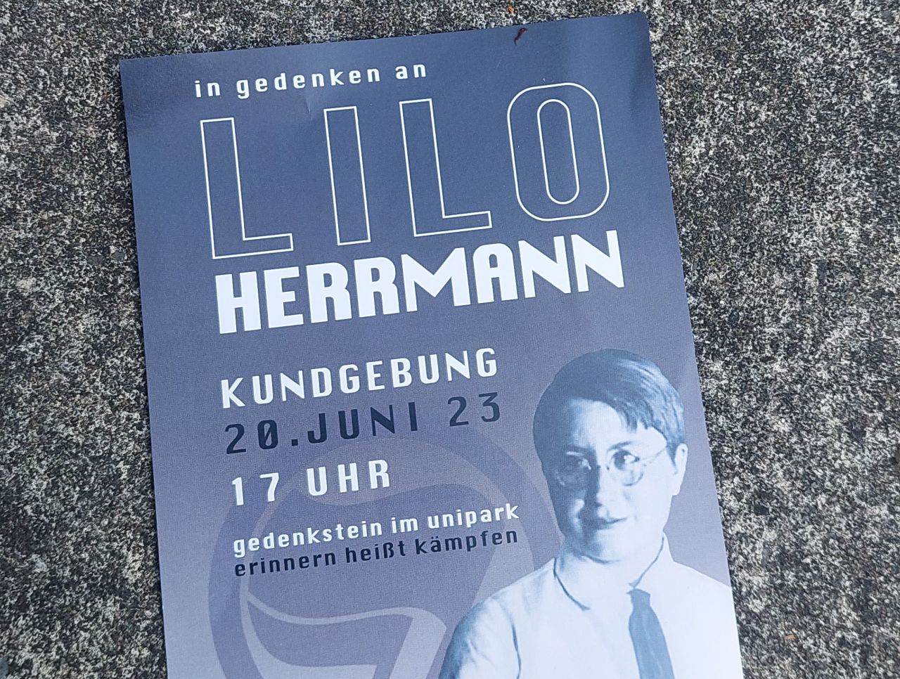 In stillem Gedenken erinnern wir EVG-Frauen Stuttgart an Liselotte („Lilo“) Hermann im Uni-Park vor der TH in Stuttgart, wo 1988 ein Gedenkstein für sie errichtet wurde. In Stuttgart gibt es auch einen Stolperstein an ihrem ehemaligen Wohnort in der Hölderlinstraße.