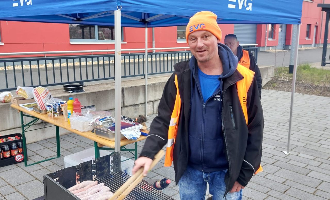 Die Abellio-Betriebsgruppe hat am Dienstag zum Infogrillen in die Werkstatt nach Sangerhausen eingeladen. Bei echter thüringischer Bratwurst tauschten wir uns über die bevorstehende Tarifrunde aus und diskutierten Fragen zur Aufsichtsratswahl bei Abellio.