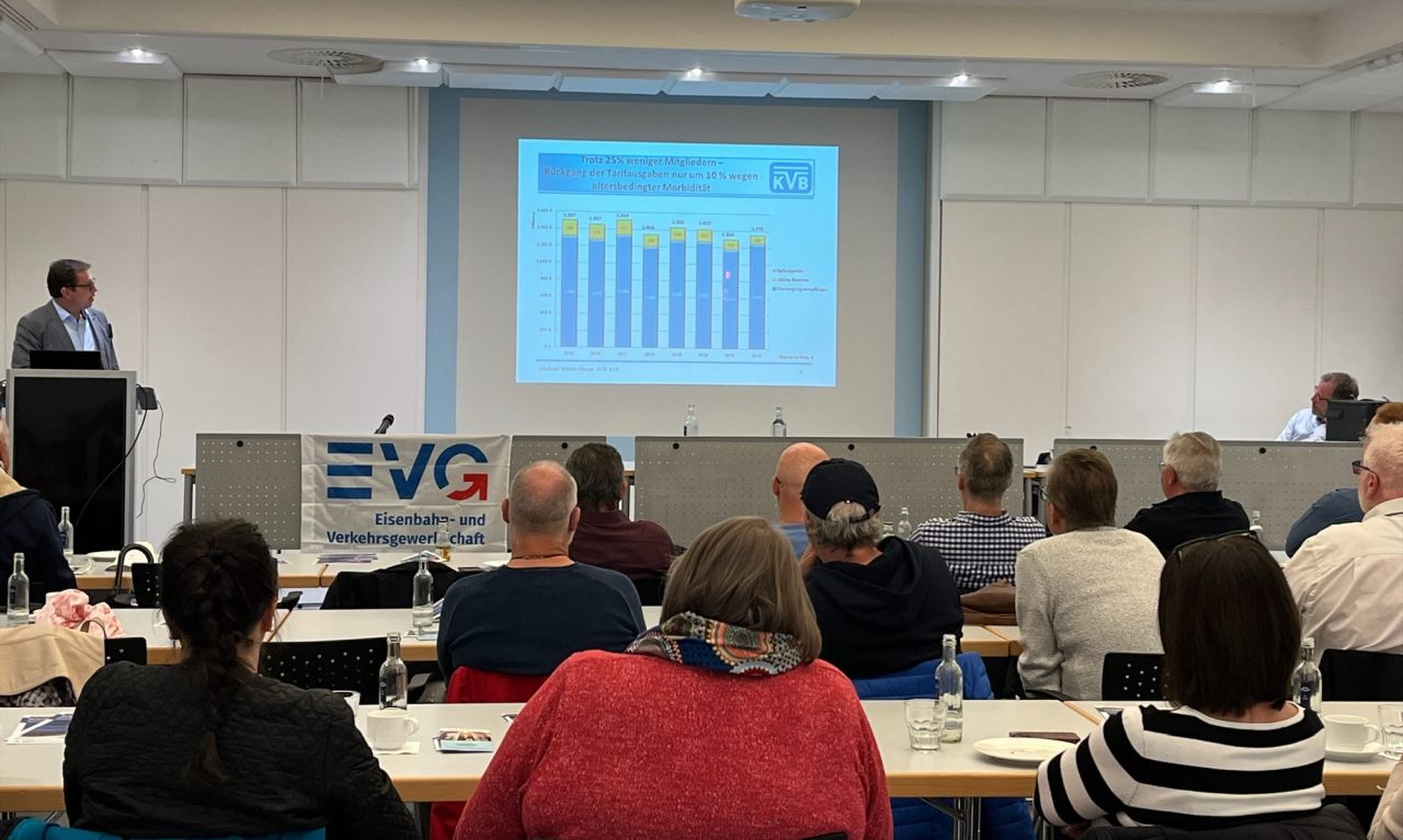 Über die Arbeit im BesPR Mitte und Informationen zum Eintritt in den Ruhestand berichtete Kollege Michael Zapp, Vorsitzender BesPR Mitte. Hier kamen viele Fragen aus dem Publikum, was wiederum gezeigt hat, wie wichtig die neue EVG Seminarreihe „Unbesorgt in den Ruhestand“ ist.