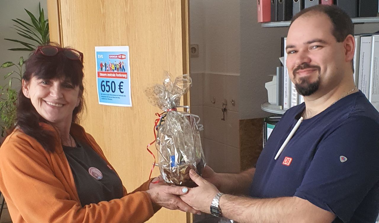 Die Betriebsgruppe der FZI aus Chemnitz hat es sich nicht nehmen lassen, den Frauen eine kleine Aufmerksamkeit zum Weltfrauentag zu überreichen.