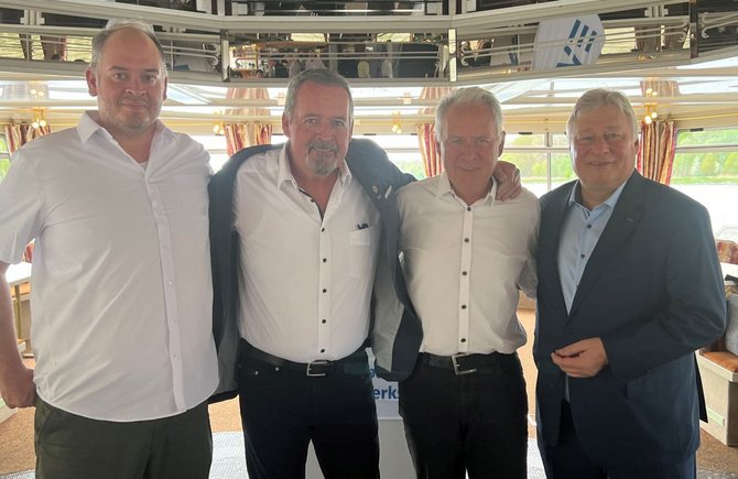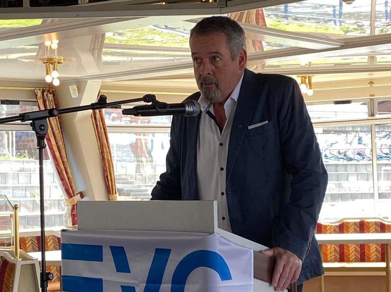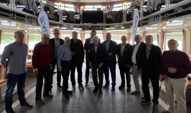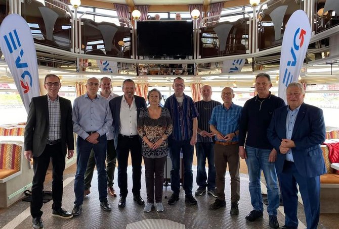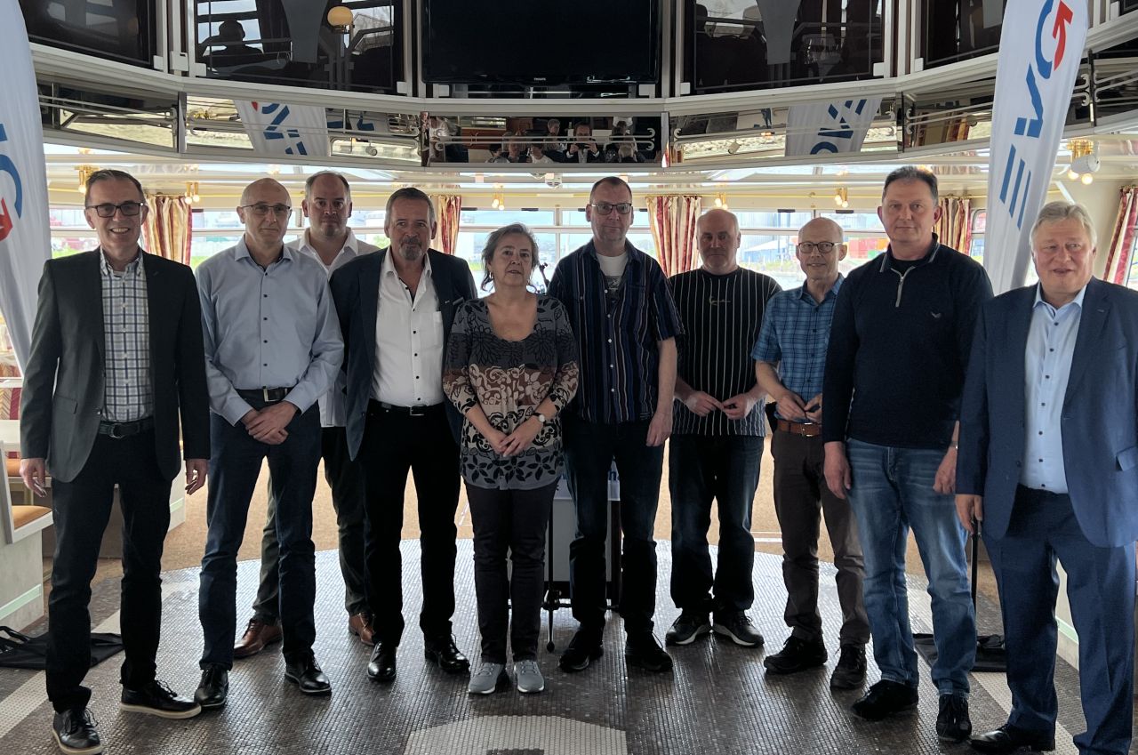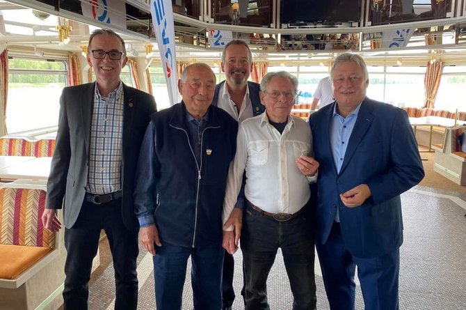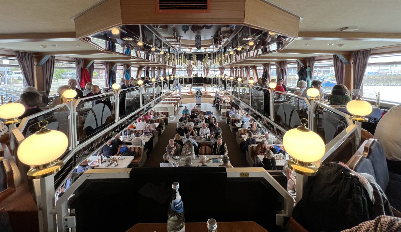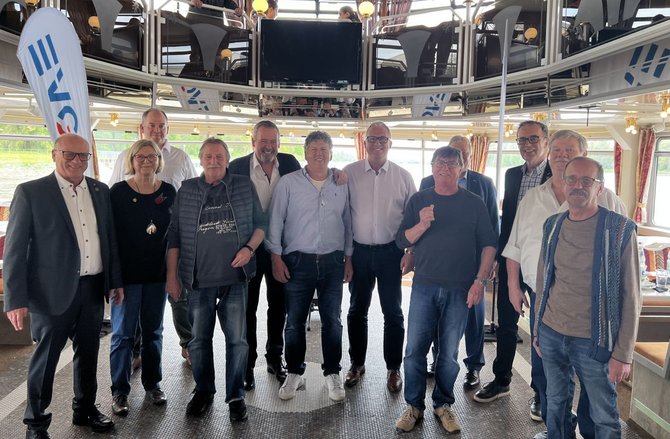 Unserem Vorsitzenden der Gewerkschaft, Martin Burkert, war es wichtig, die Ehrungen persönlich zu übernehmen. Kaum sind die Leinen los gewesen, erlebten wir auf dem Schiff zunächst ein wenig Hafenatmosphäre, bevor es durch das imposante Sperrtor hinaus auf den Rhein gegangen ist.