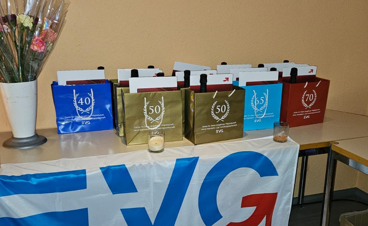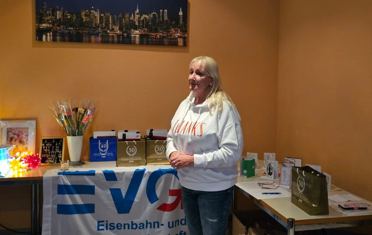 „Ihr habt nicht nur die Entwicklung der Eisenbahn aus nächster Nähe erlebt, sondern wart auch stets verlässlicher Teil der EVG-Gemeinschaft,“ betonte Eisenhuth. Mit persönlichen Anekdoten und den besonderen Momenten jedes Jubiläumsjahres erinnerte sie an die vielen gemeinsamen Erfolge und Herausforderungen.