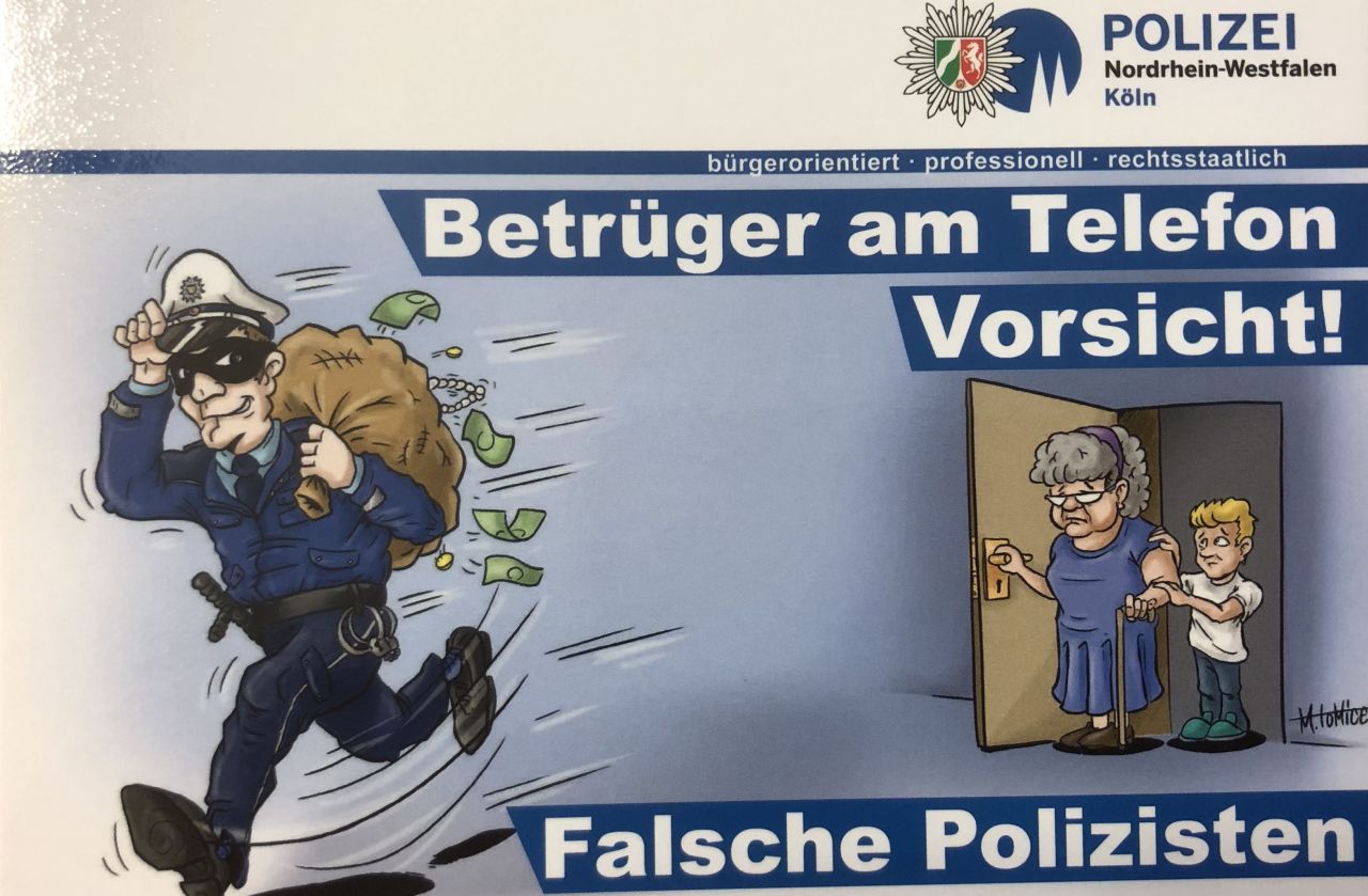 Die Broschüre der Polizei „Im Alter sicher leben“ mit wichtigen Tipps zur Abwehr von Betrugsmaschen ist beim Polizeipräsidium Köln unter der Mailadresse kriminalpraevention.koeln@polizei.nrw.de oder unter der Rufnummer 0221-229-8655 zu erhalten.