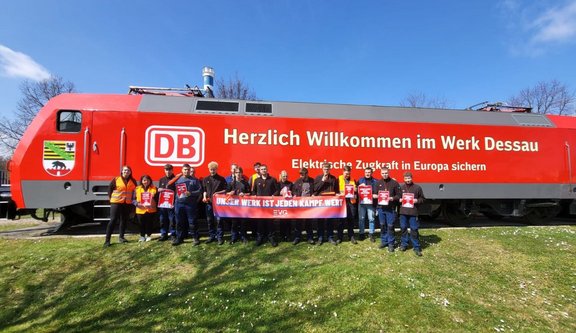 Hintergrund der Aktion ist die drohende Schließung des nahegelegenen Werks in Delitzsch. Ein Schritt, der nicht nur zahlreiche Arbeitsplätze bedroht, sondern auch die gesamte Instandhaltungsstruktur schwächt - mit direkten Auswirkungen auf Ausbildung und Qualität der Fahrzeugflotte. Deshalb gilt unsere Solidarität heute ganz besonders den Kolleginnen und Kollegen in Delitzsch.