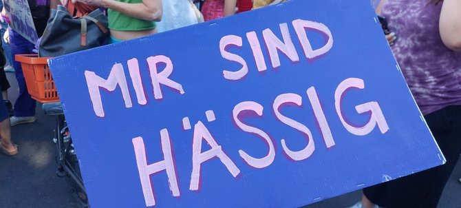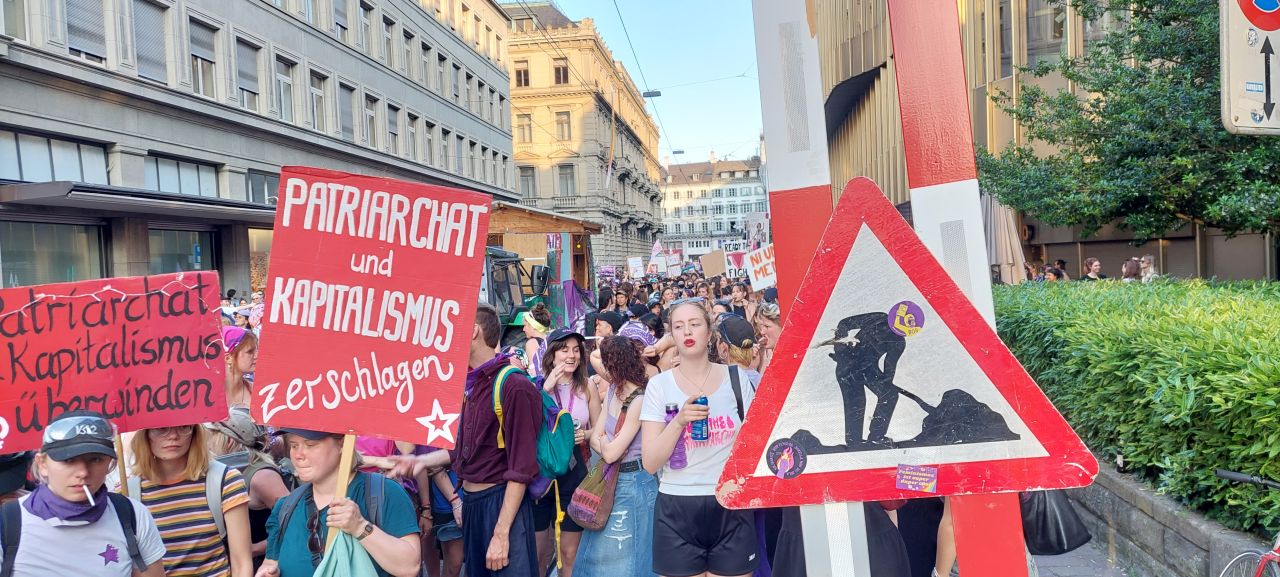 Eine wahre Gleichstellung der Geschlechter gibt es hier in vielen Bereichen immer noch nicht, egal, ob es die Rente, die unbezahlte Haus- oder Reproduktionsarbeit, Krankenkassenbeiträge oder andere Bereiche betrifft. Auch Diskriminierung aller Ausprägungen und sexualisierte Gewalt sind Themen, die ALLE Frauen „hässig“ werden lässt und in der kapitalistischen patriarchal geprägten Schweizer Gesellschaft ihre Ursache finden.